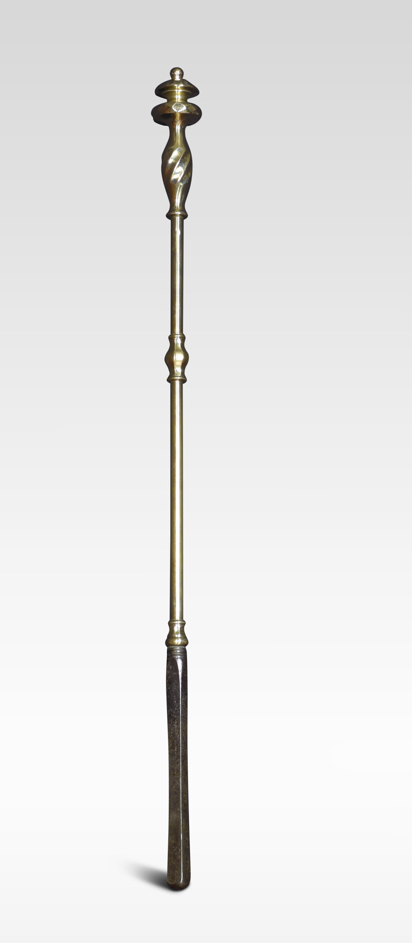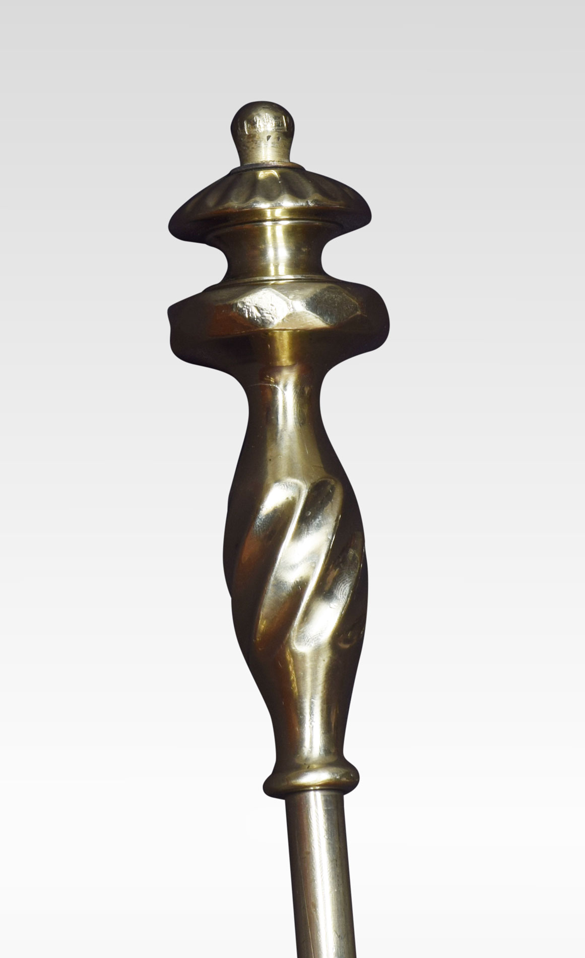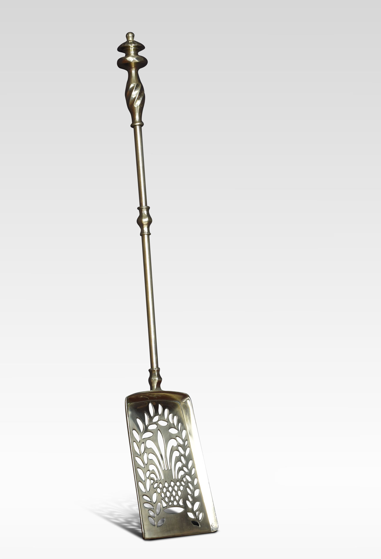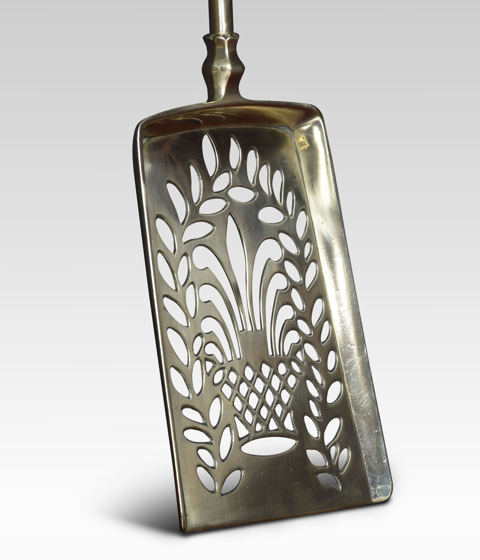 Set of three brass fire tools, consisting of poker, tongs and shovel with well-casted handles.