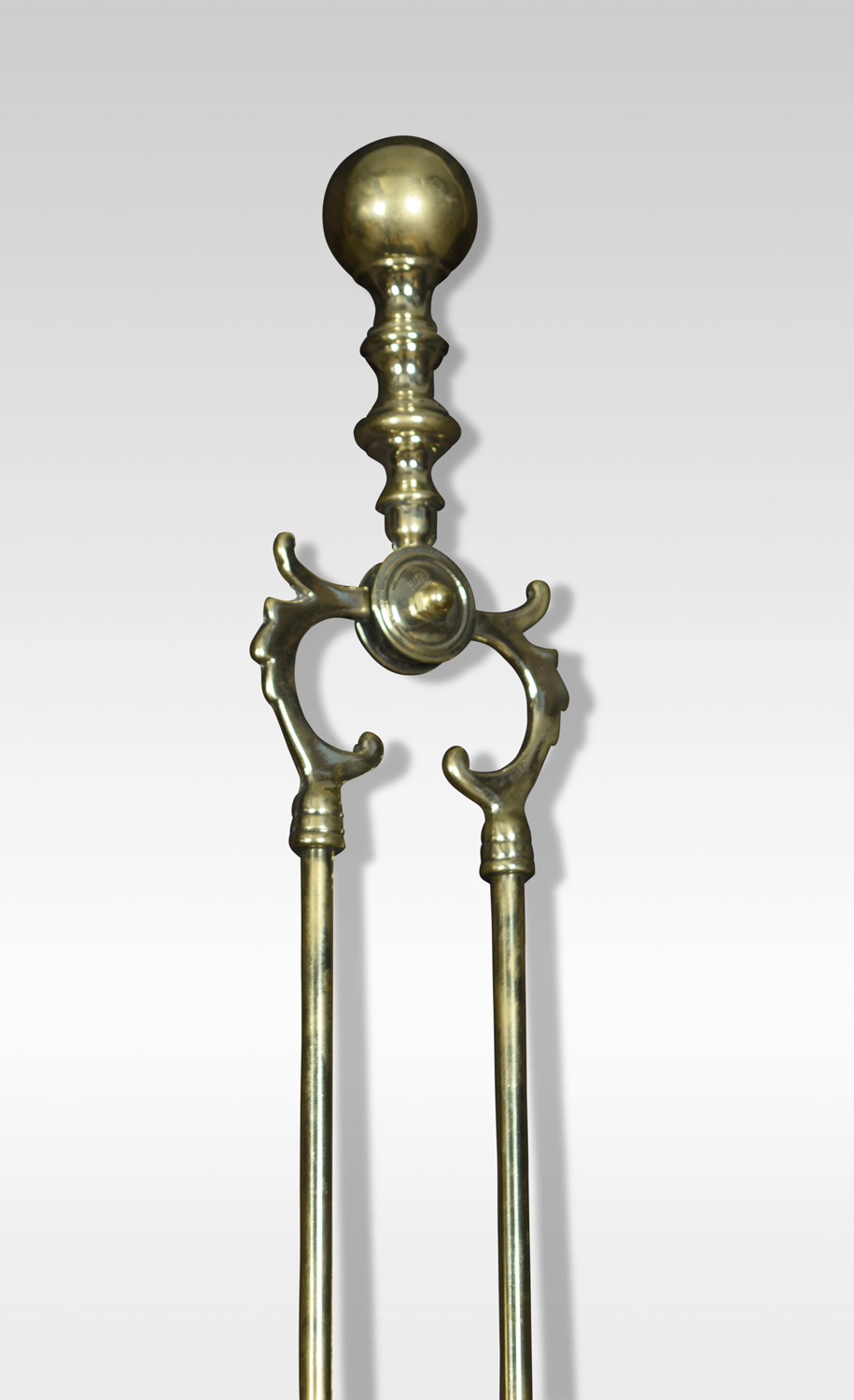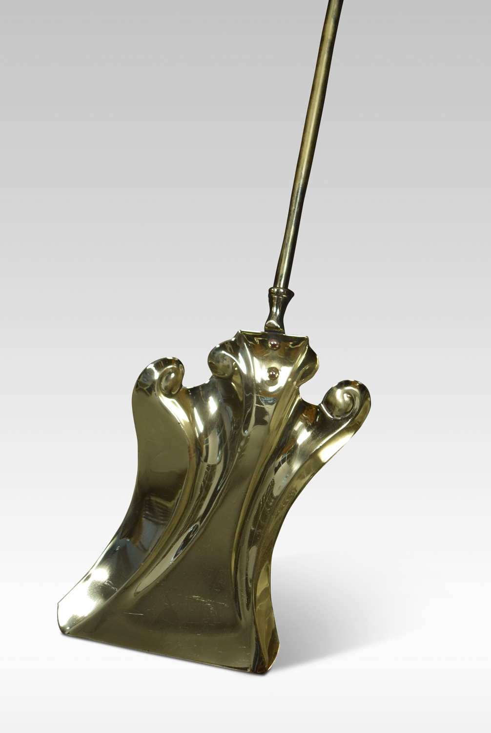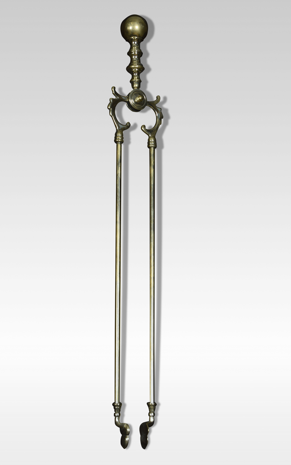 Cast brass fire tools, consisting of tongs and shovel with well casted handles