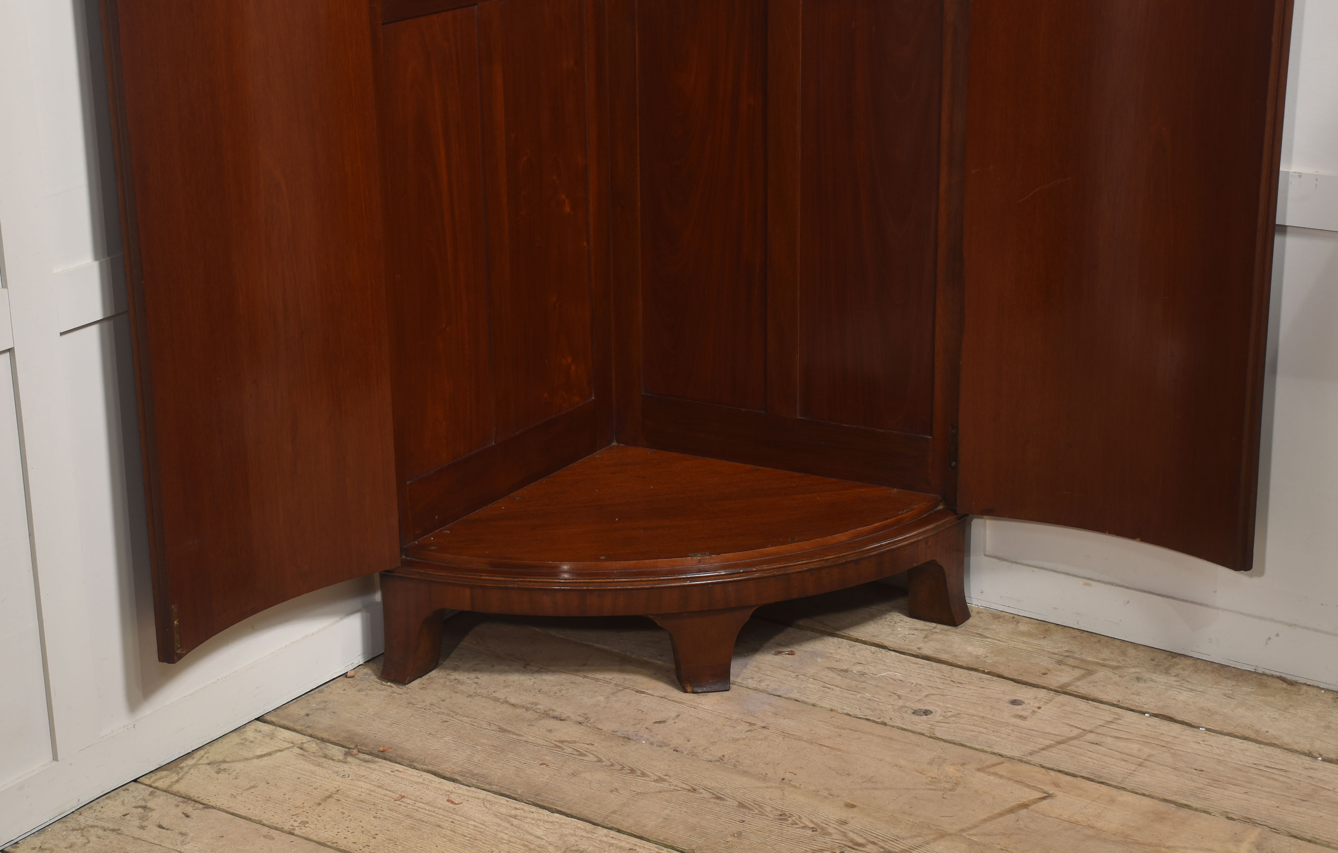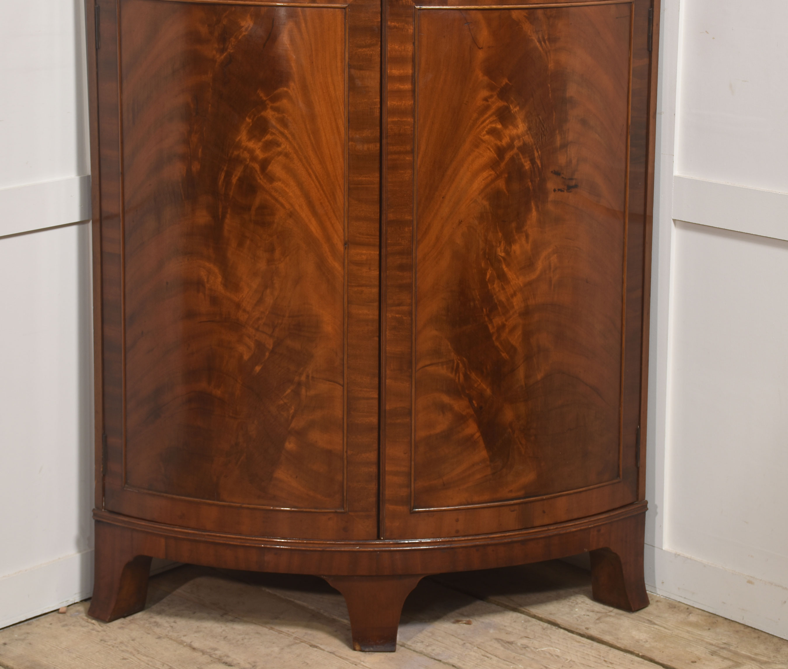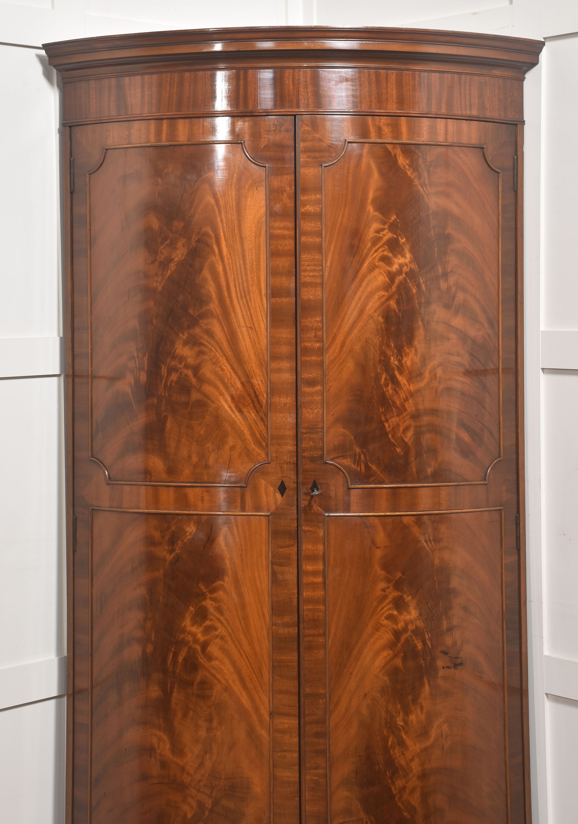 Early 20th Century Figured Mahogany Bowfront Corner Wardrobe