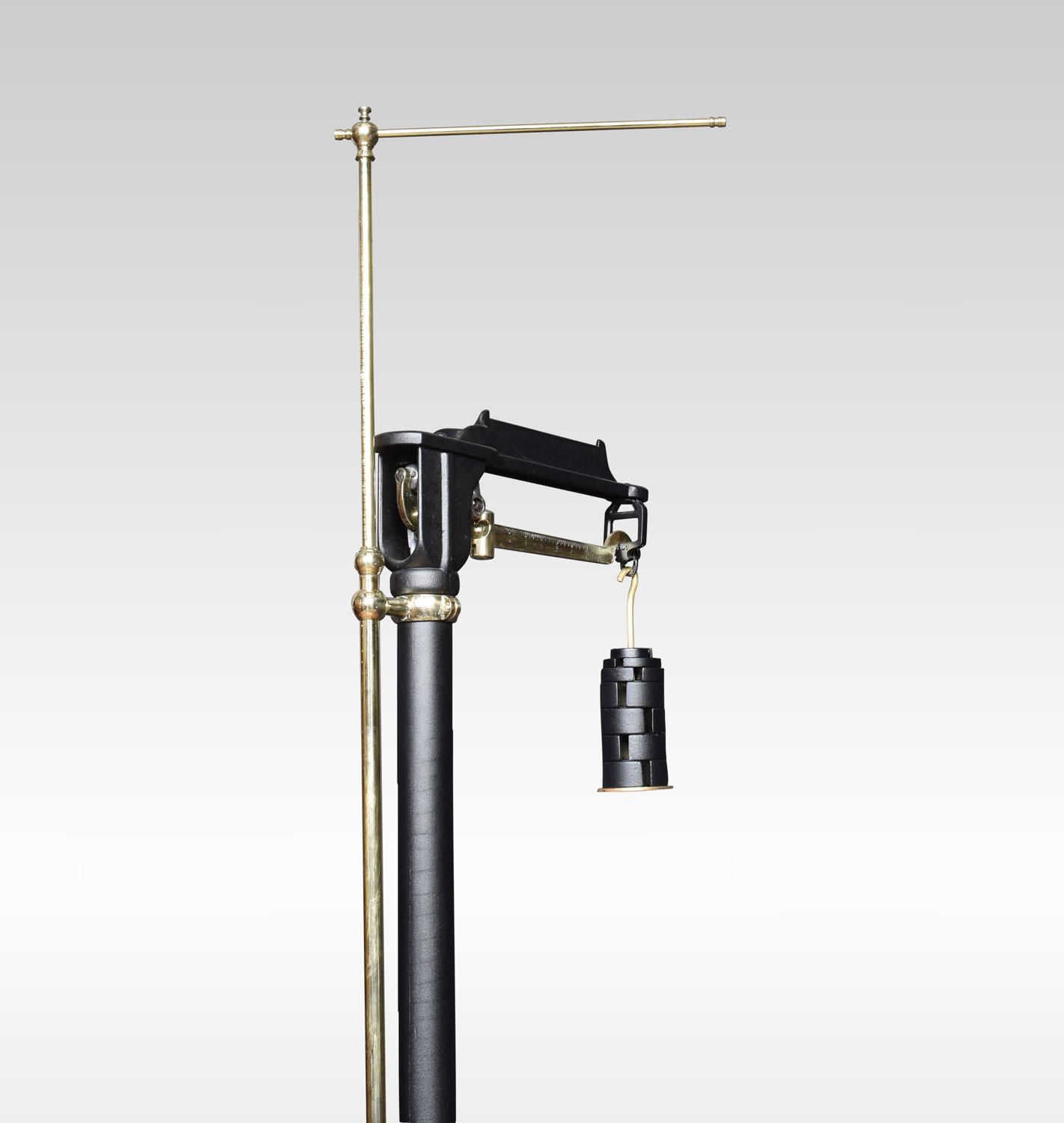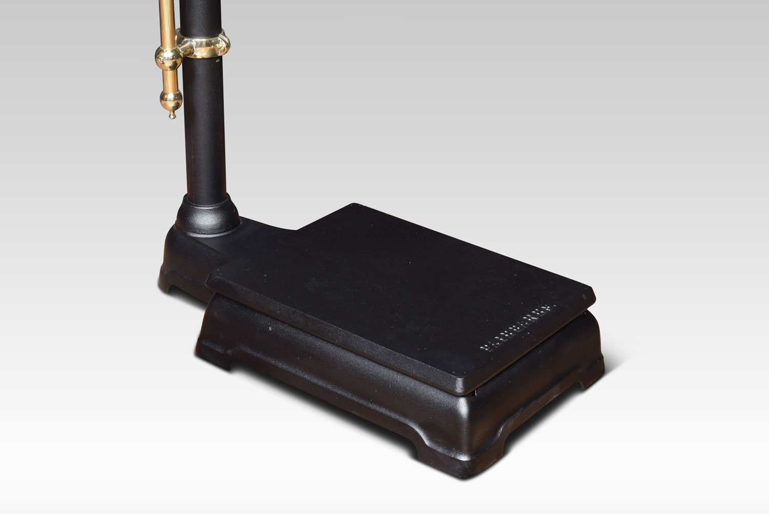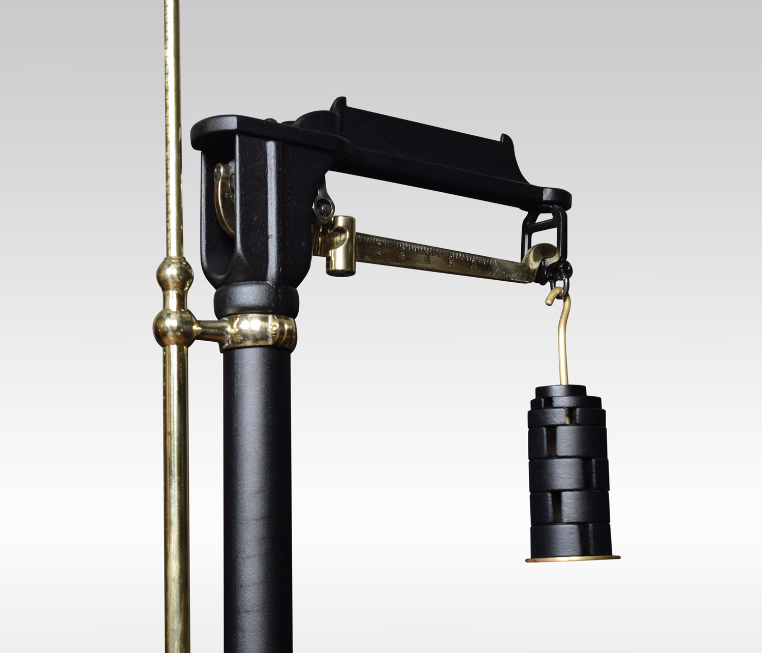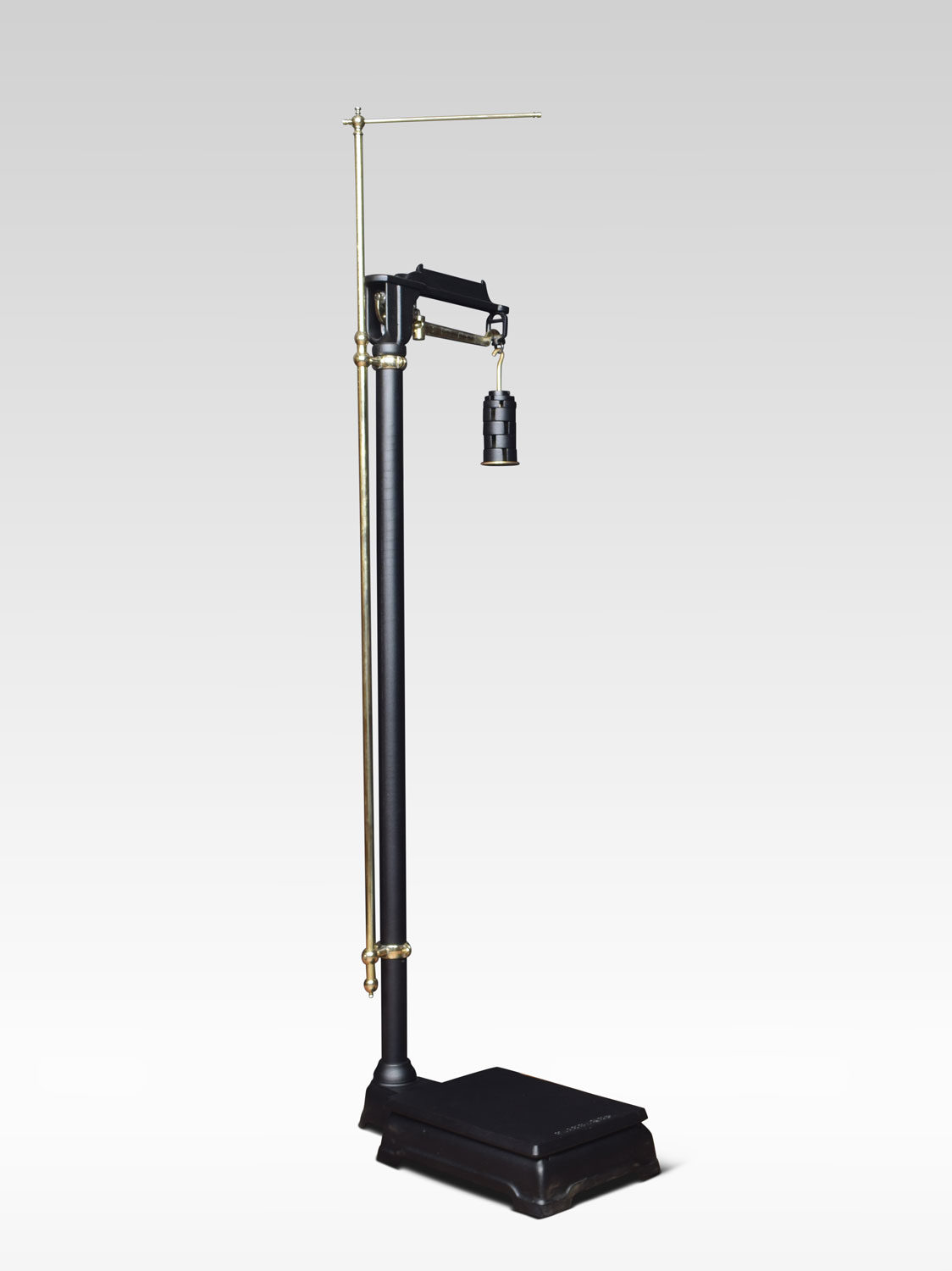 A set of Fairbanks doctors scales in black with brass adjustable measuring stick, and cast iron pressure plate. Retaining there original weights.