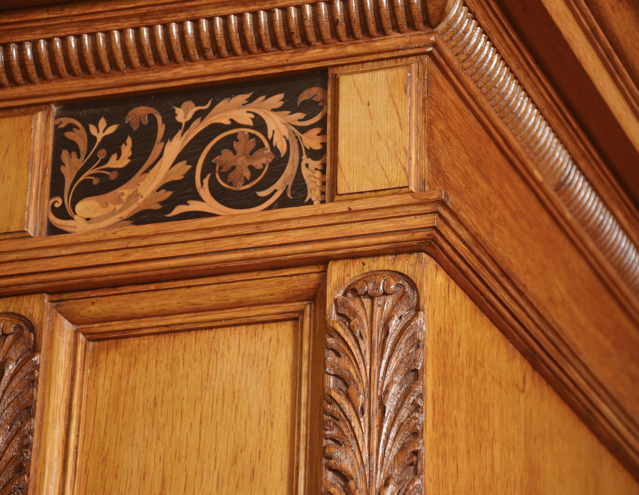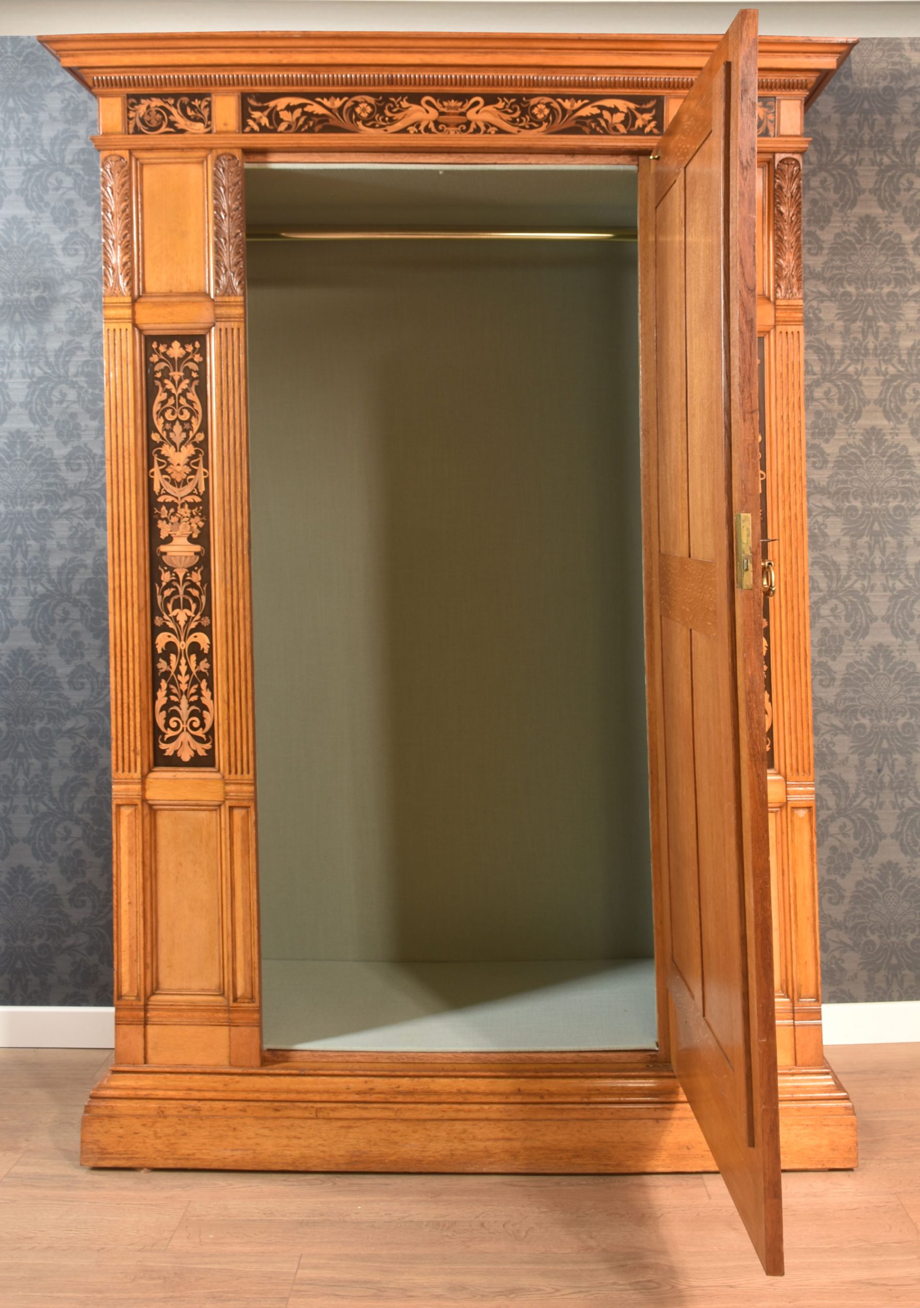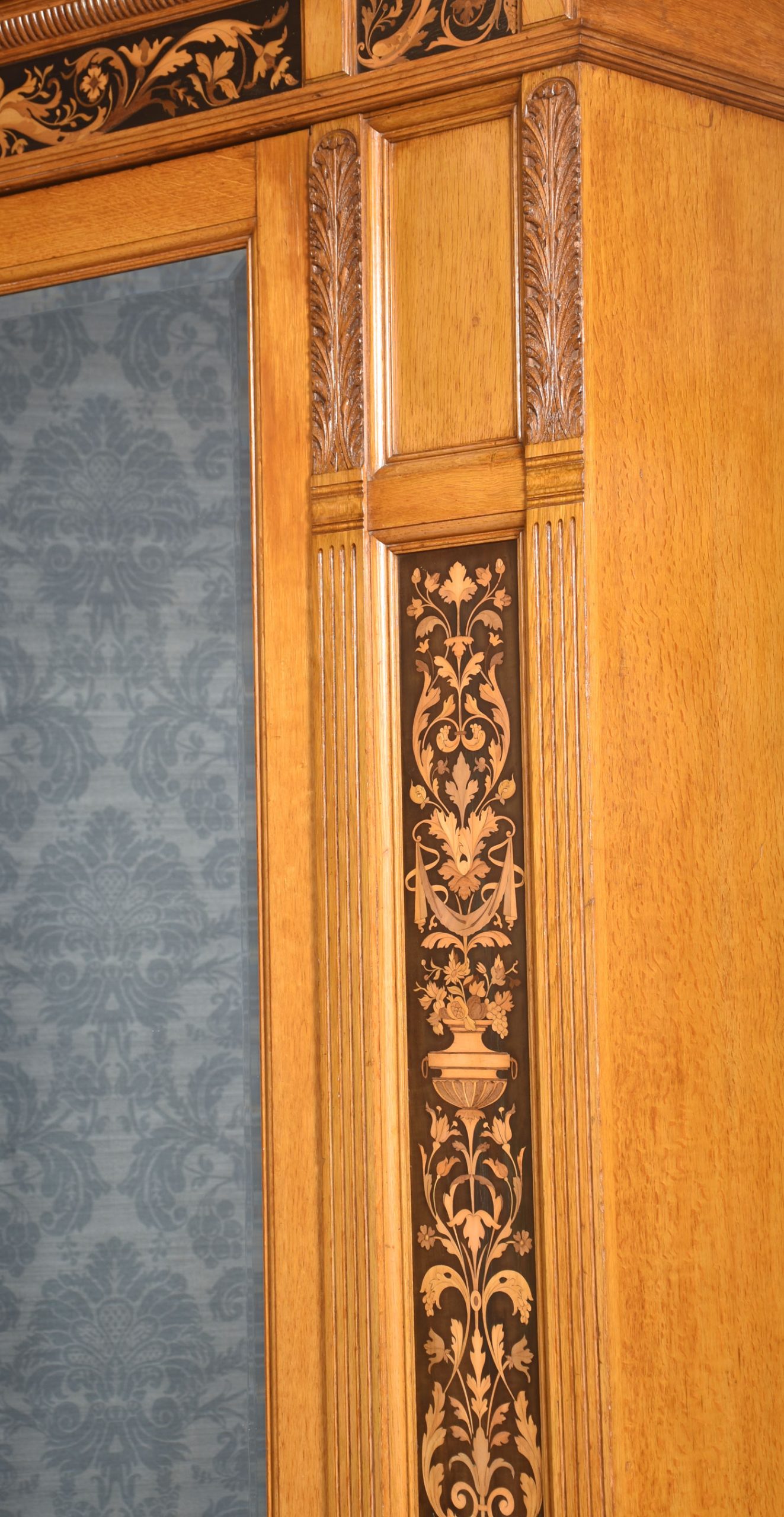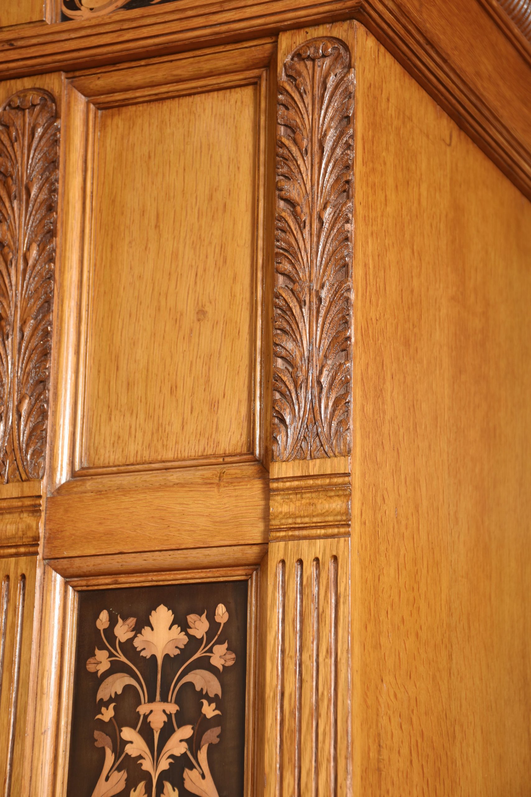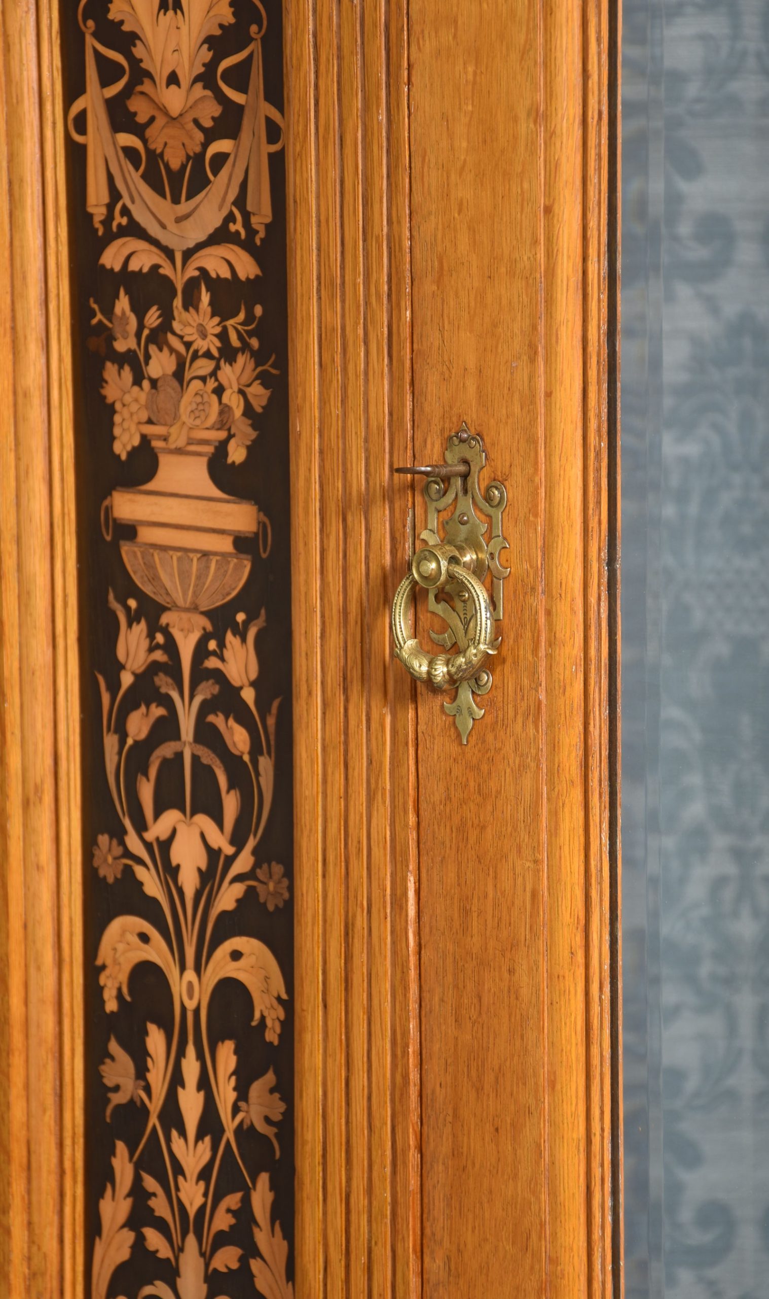 Gillows of Lancaster marquetry inlaid oak wardrobe