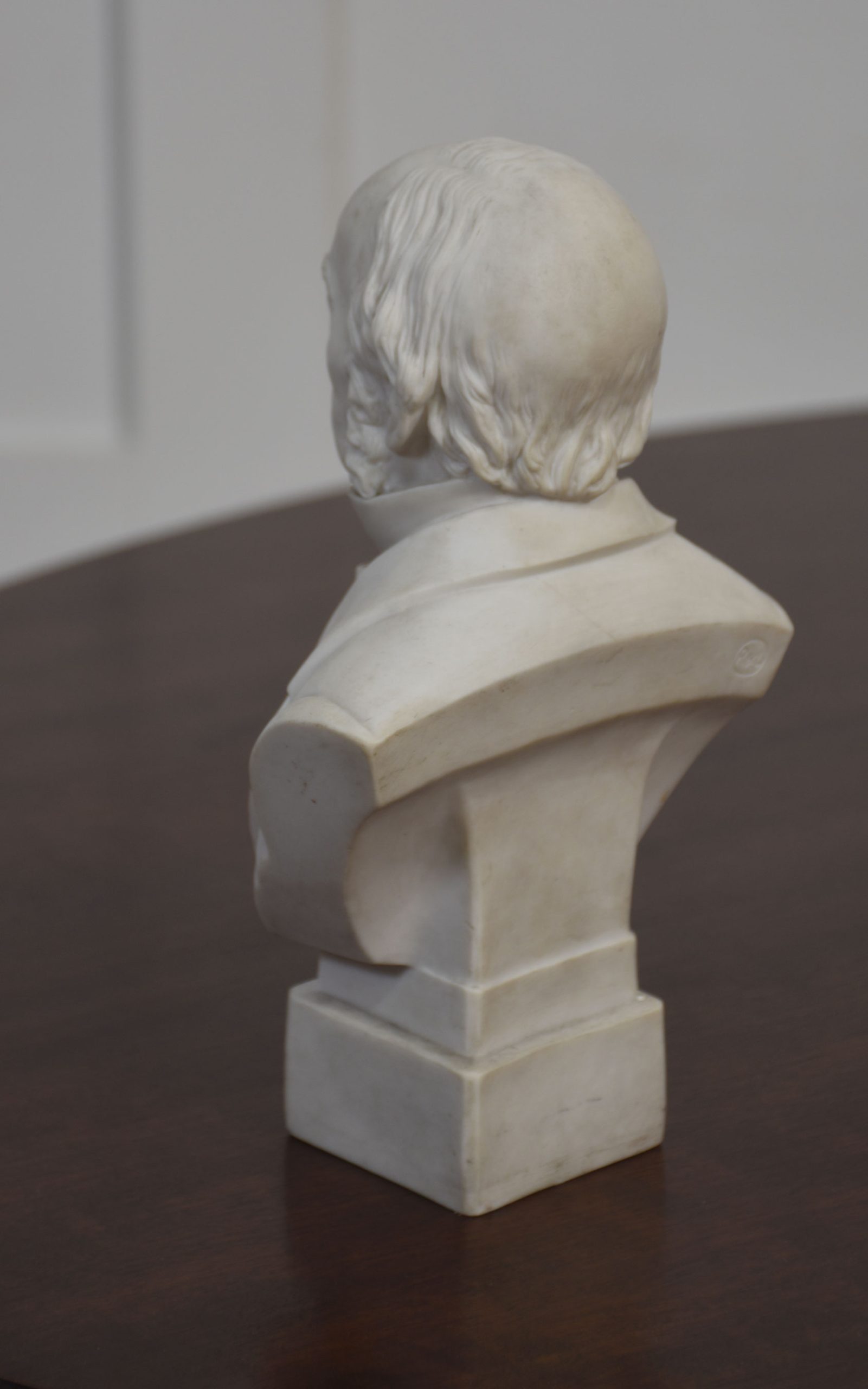 Executed in Parian ware—a fine unglazed porcelain developed in the mid-19th century to emulate marble—this bust exemplifies the popular Victorian taste for commemorative portrait sculpture intended for domestic, institutional, or educational settings. The reverse is smoothly finished, and the overall modelling reflects the restrained naturalism characteristic of the period.