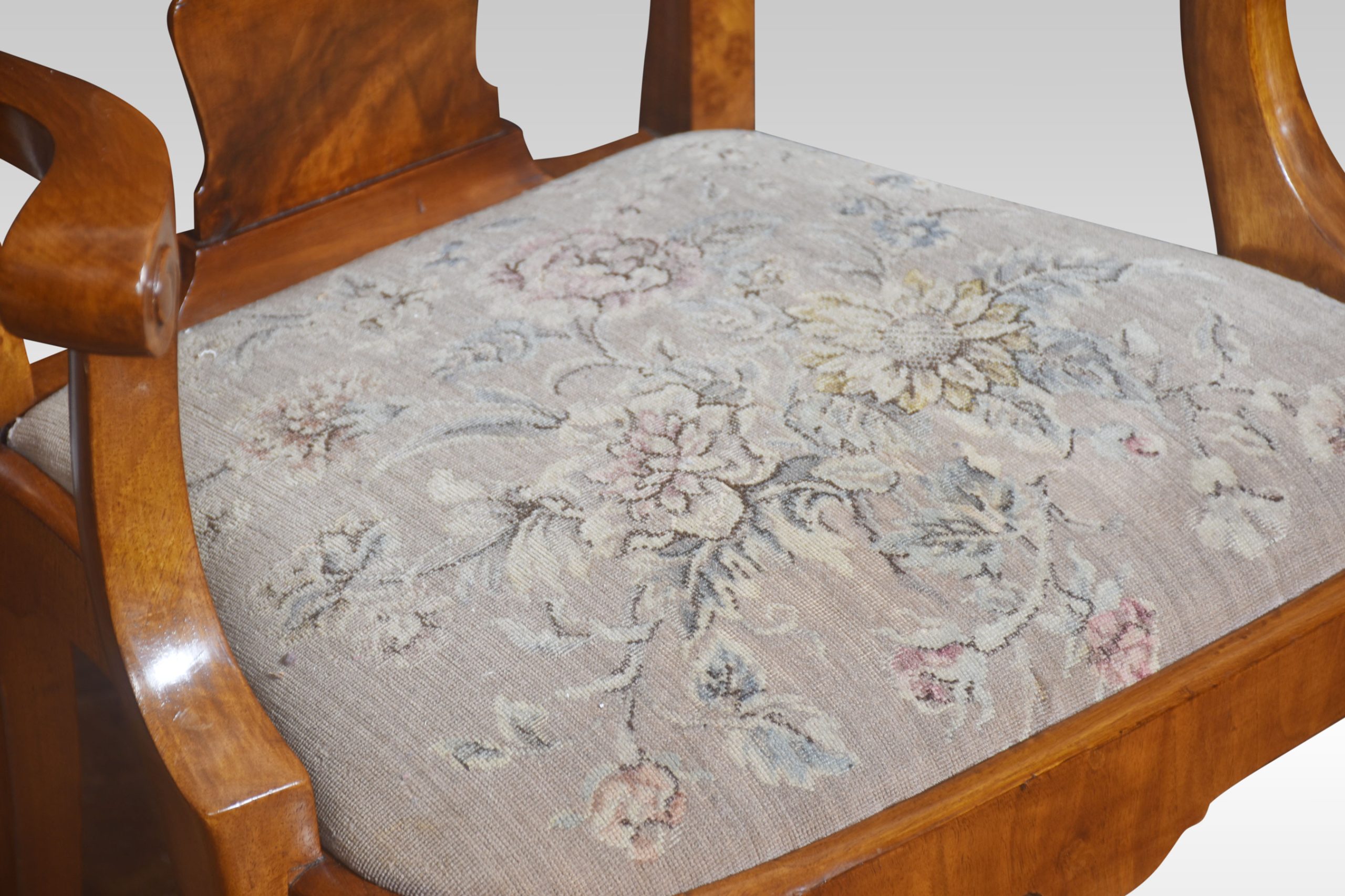 Set of ten walnut George II style dining chairs