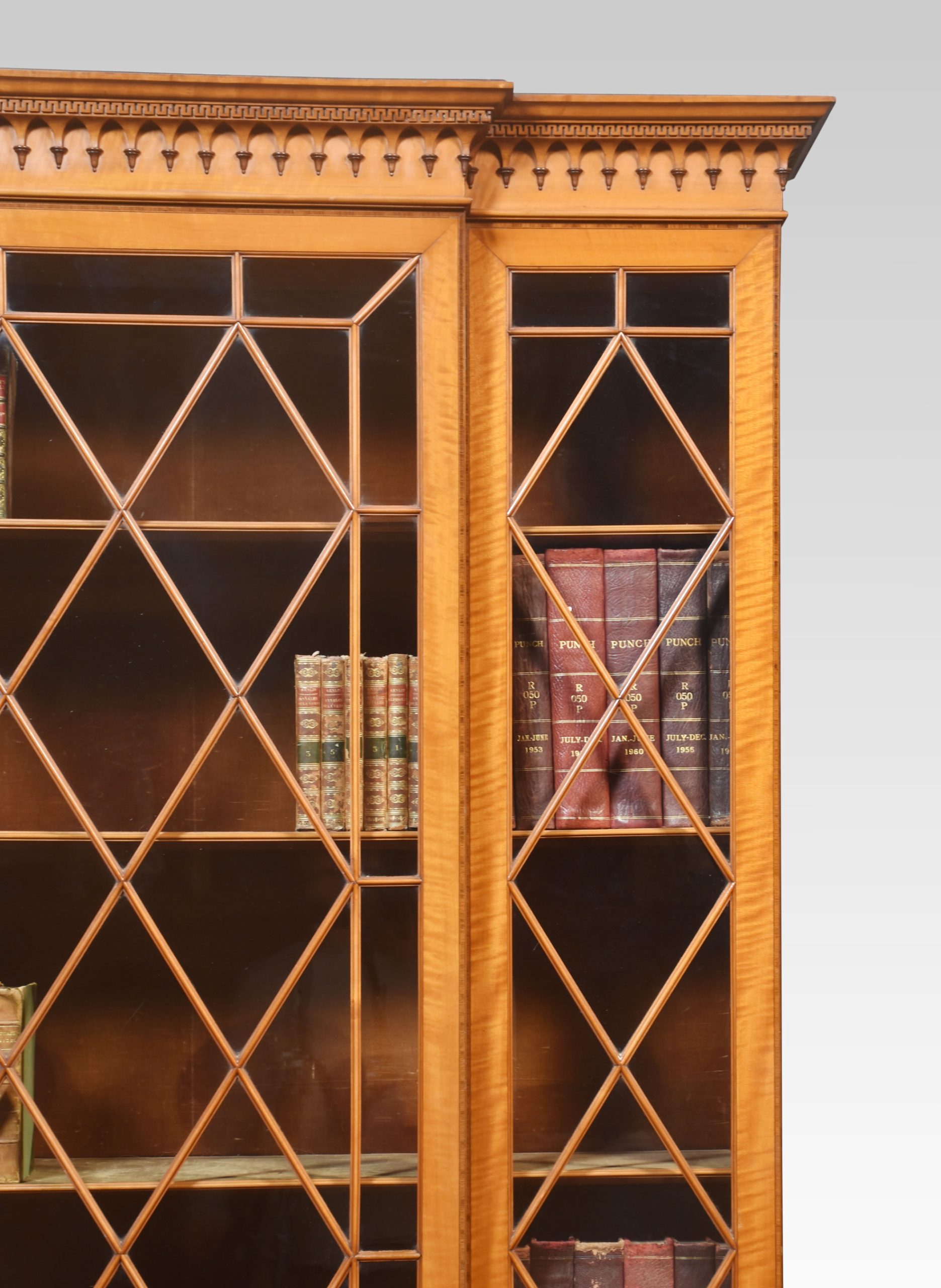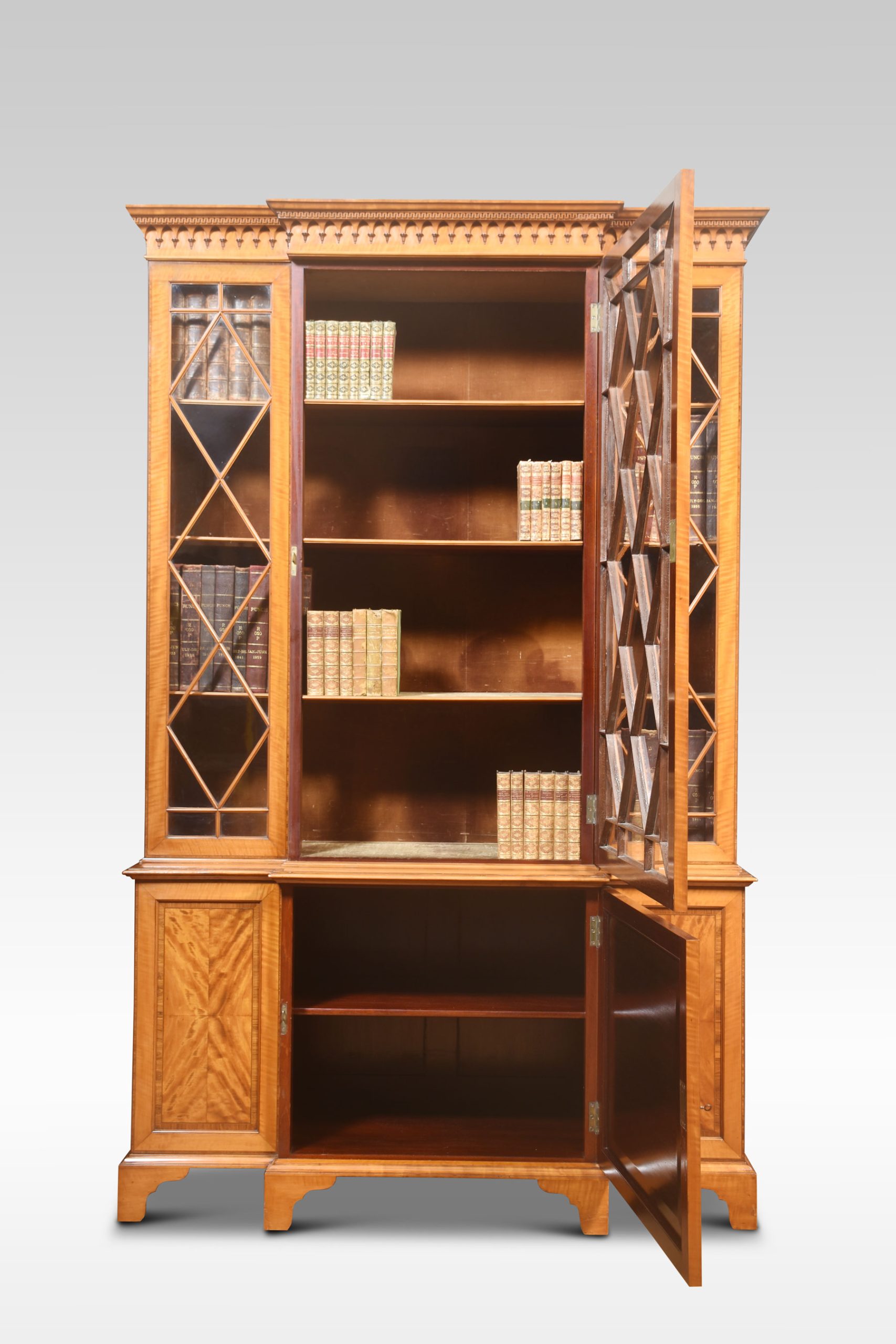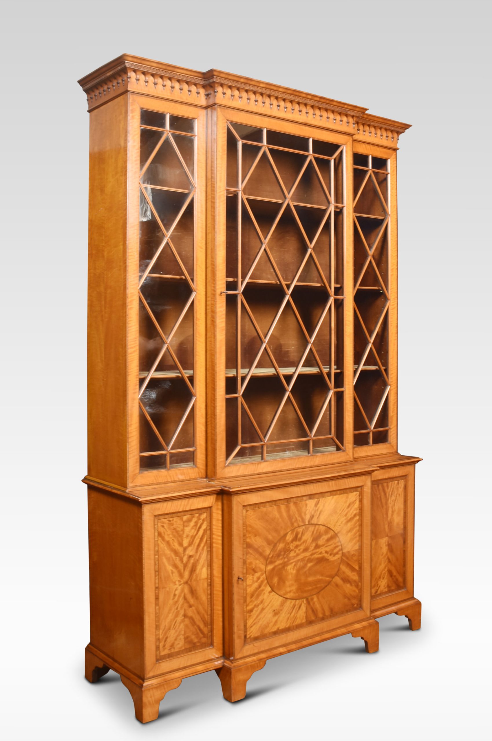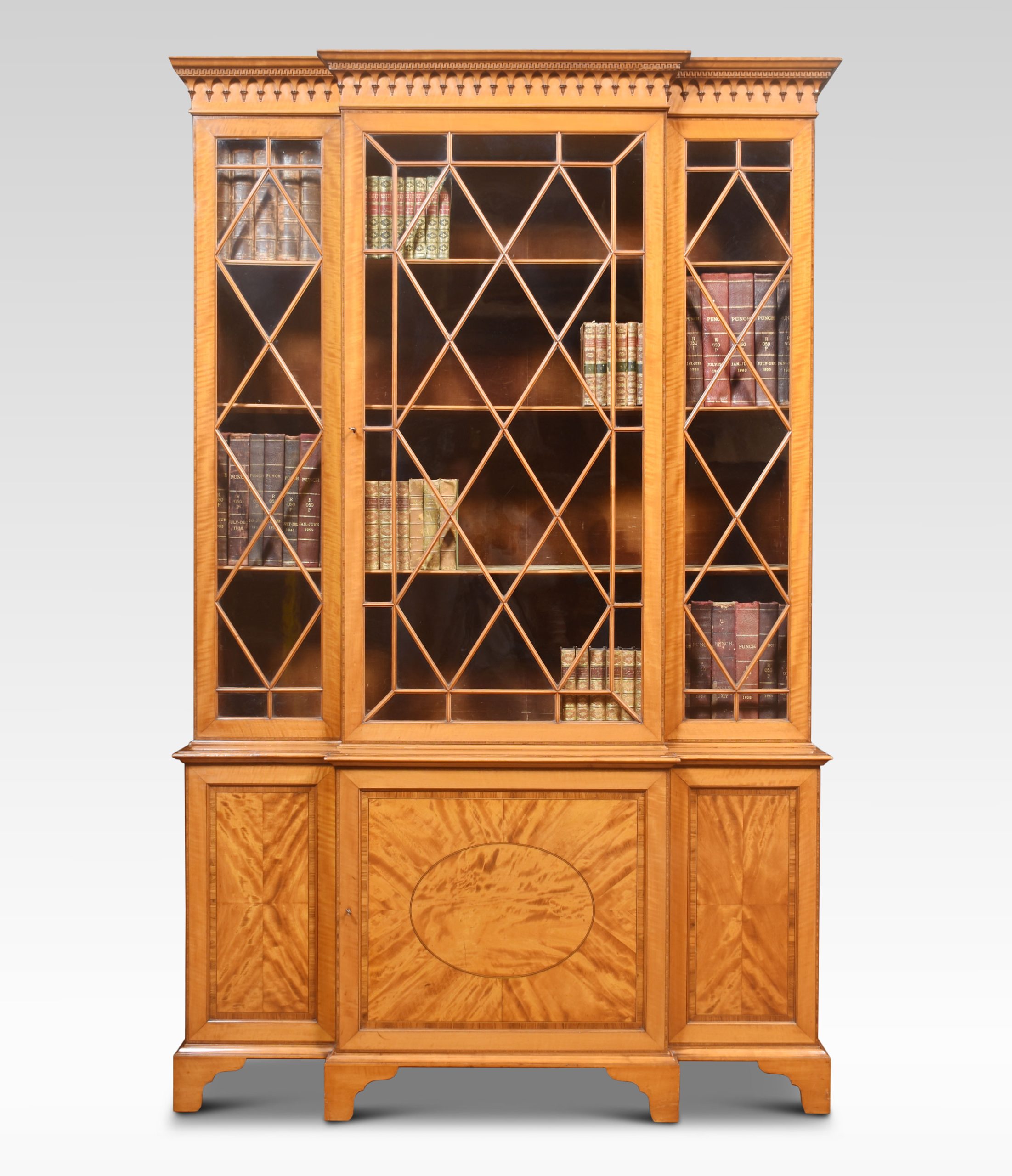 Sheraton revival satinwood breakfront bookcase