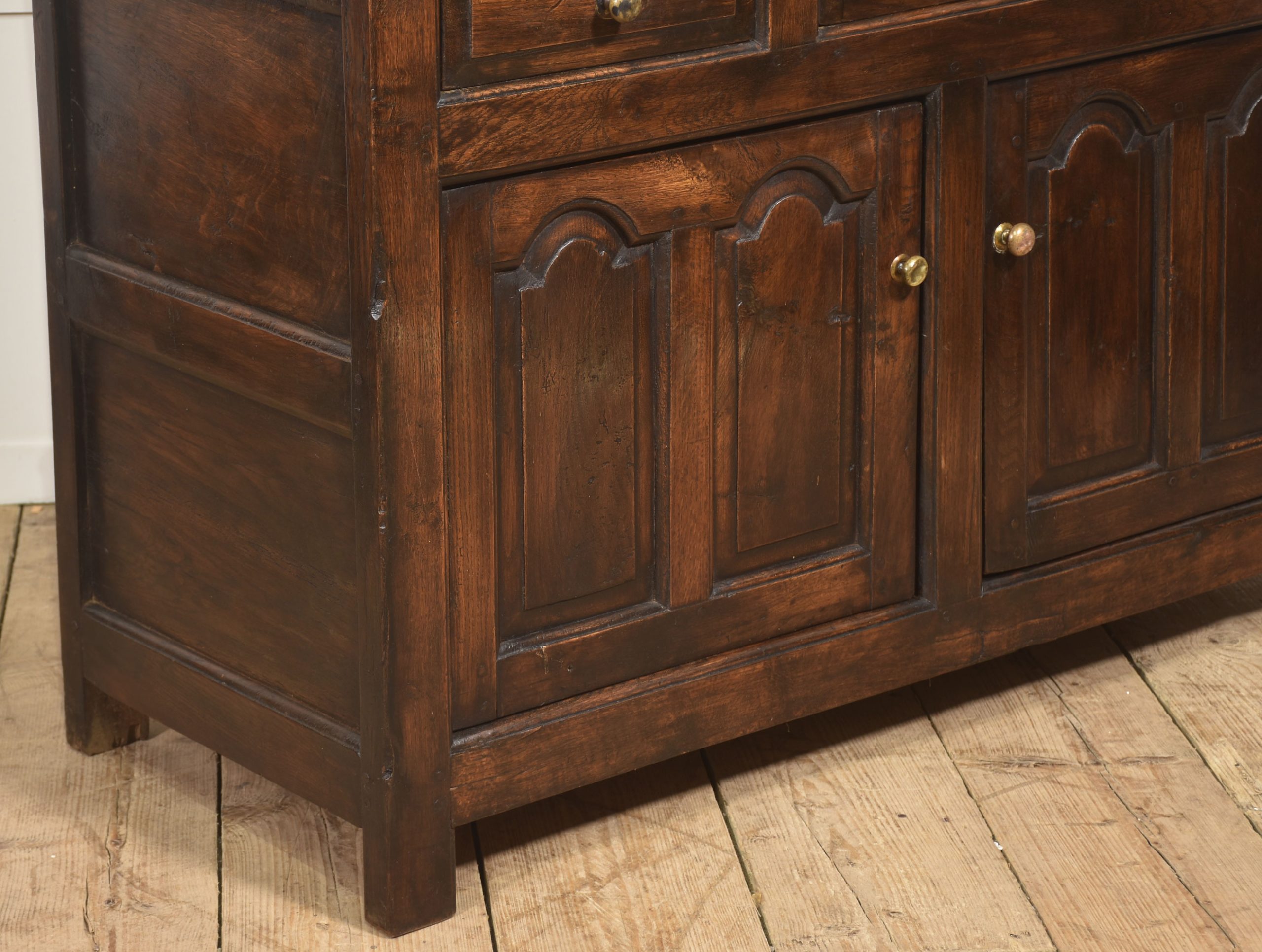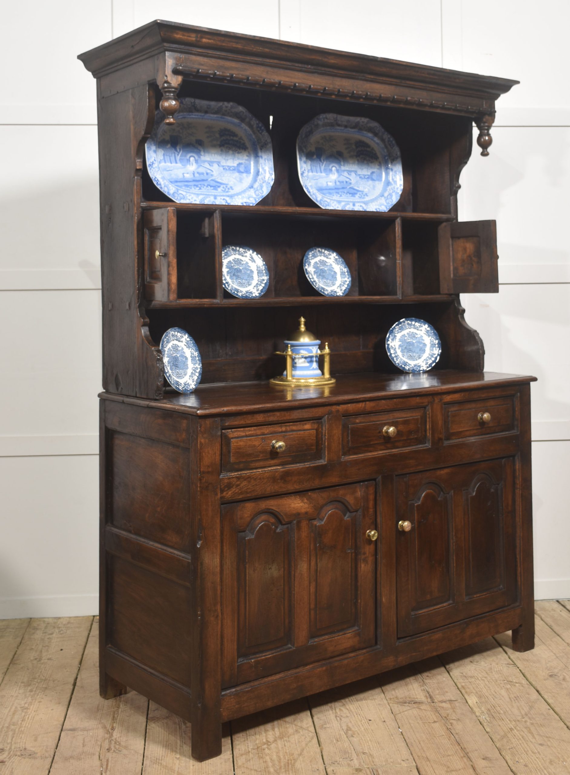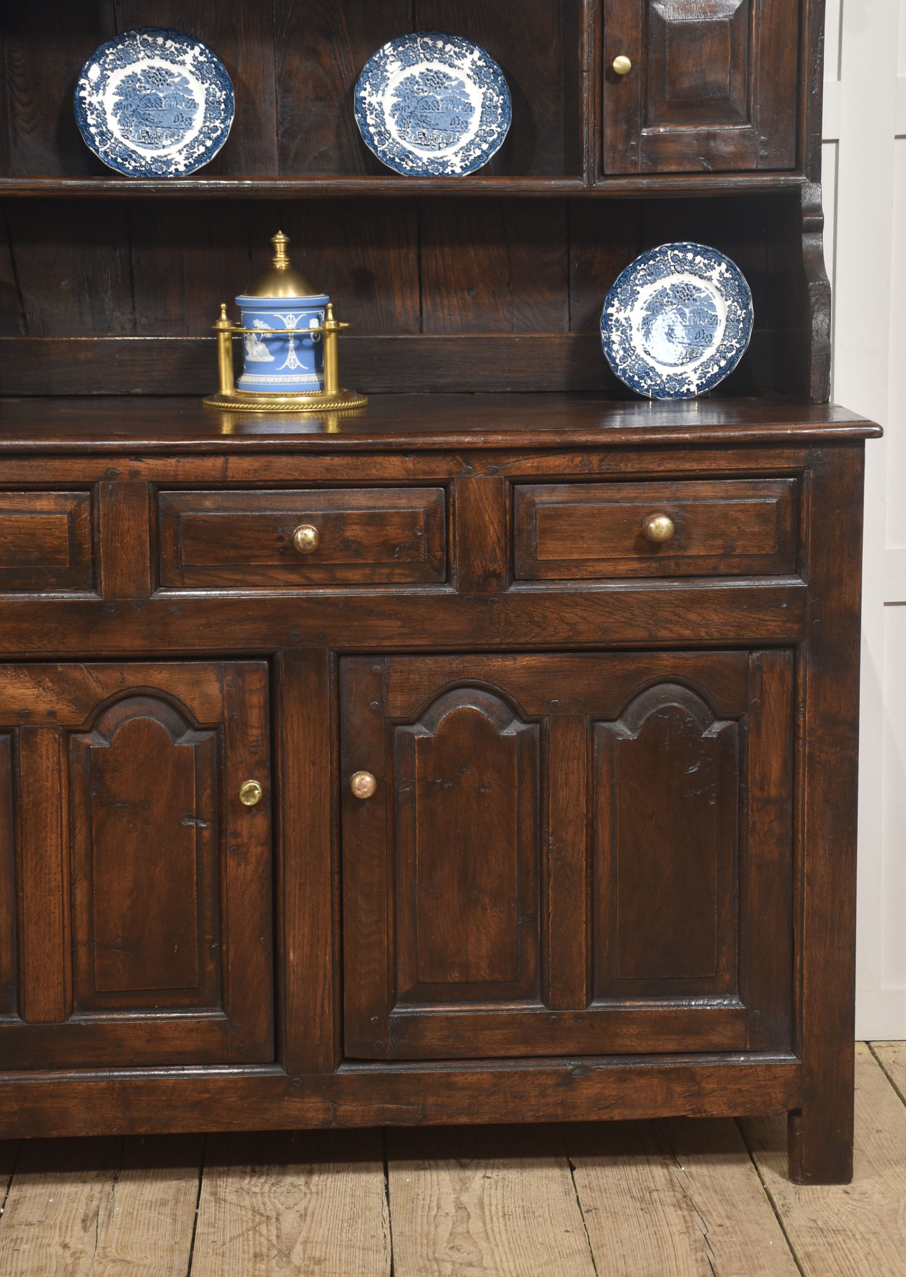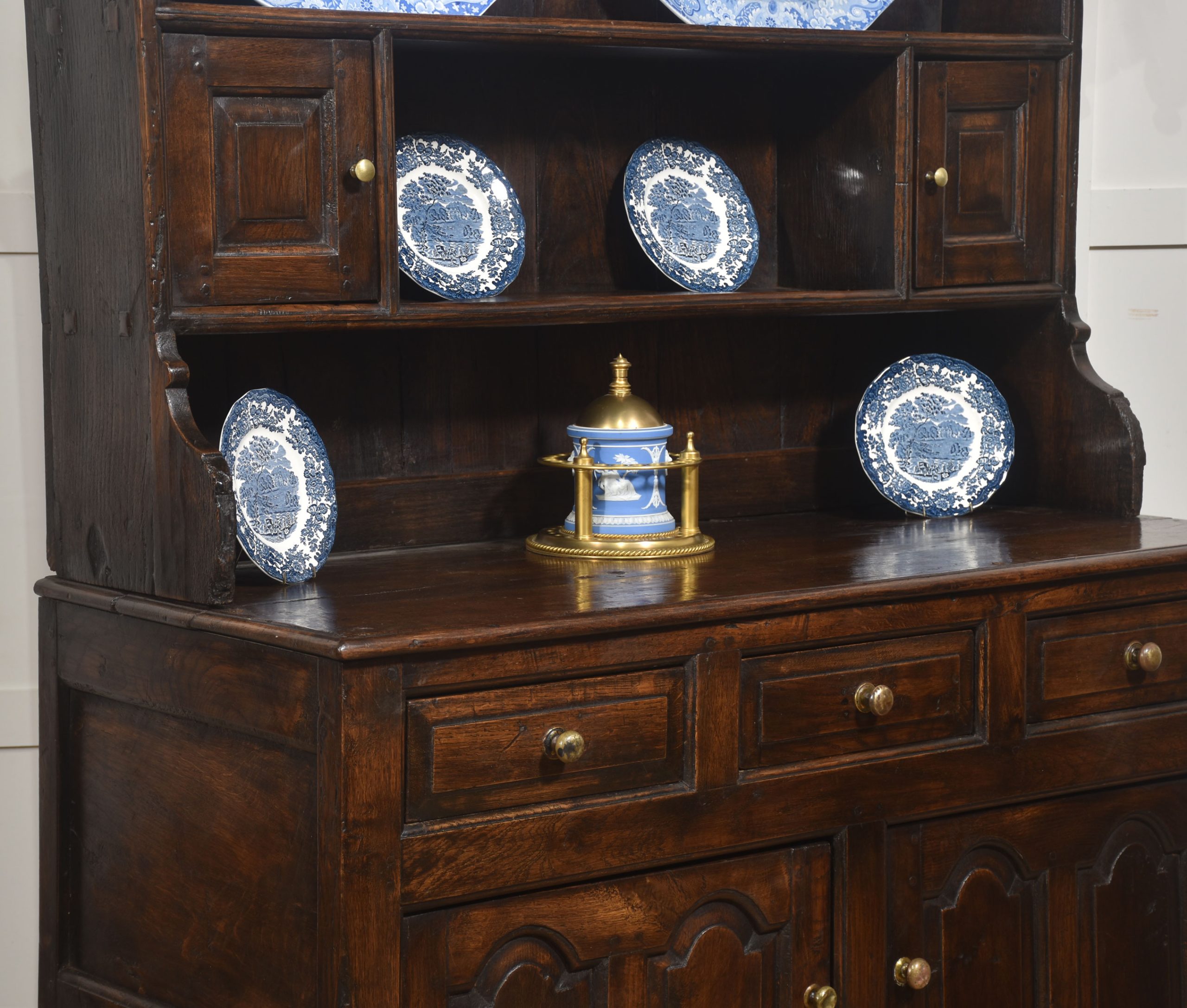 A characterful example of traditional Welsh vernacular furniture, combining practical storage with ample space for the display of ceramics and domestic wares.