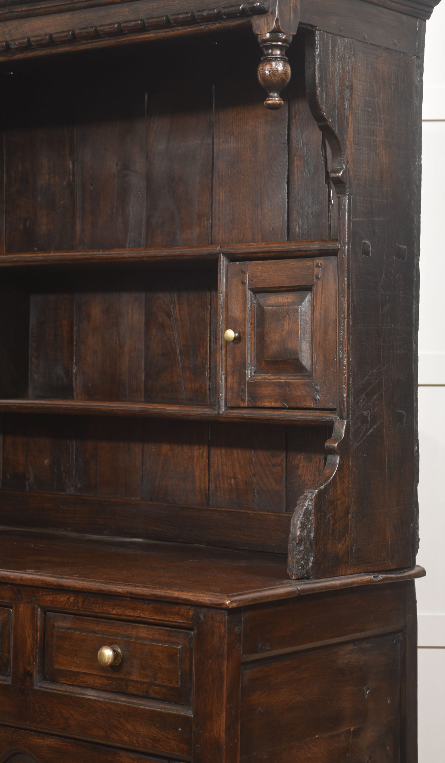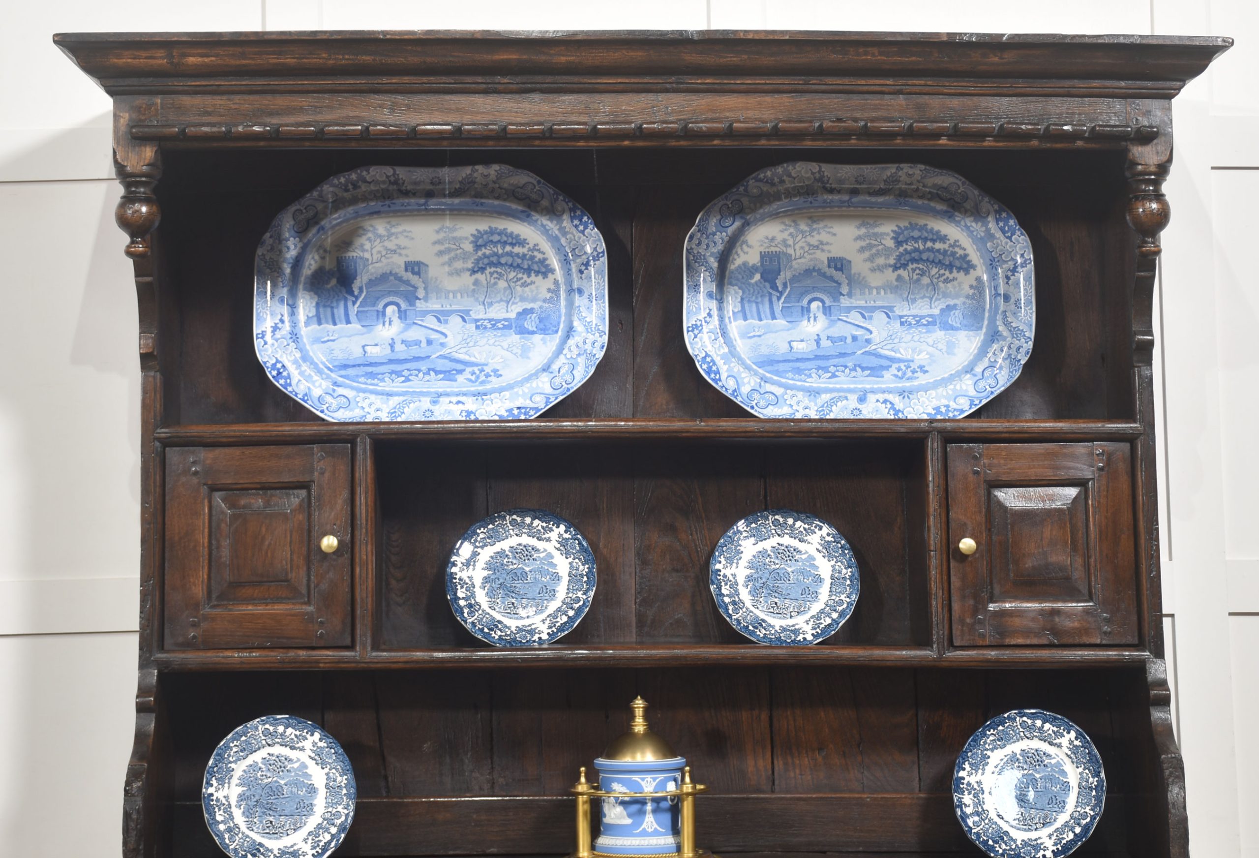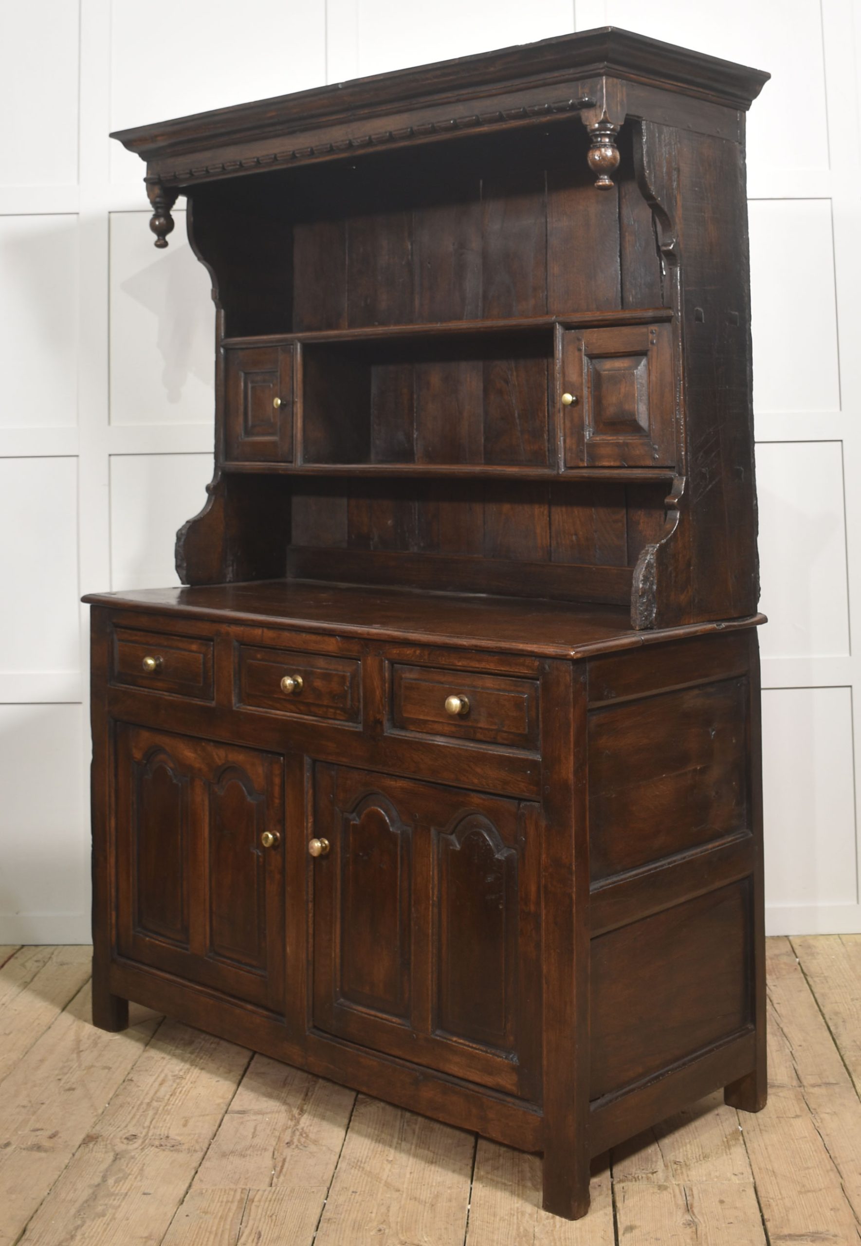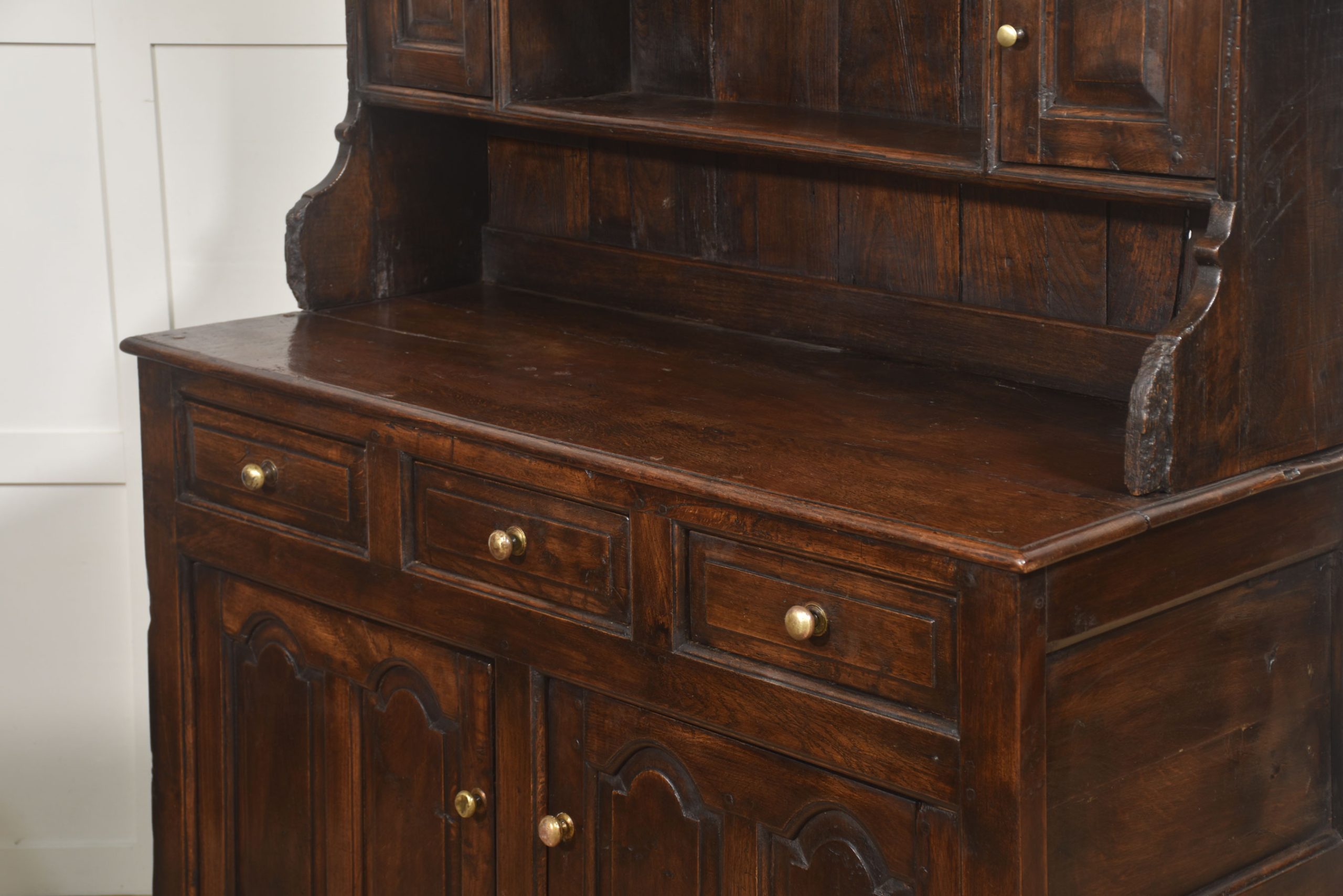 A characterful example of traditional Welsh vernacular furniture, combining practical storage with ample space for the display of ceramics and domestic wares.