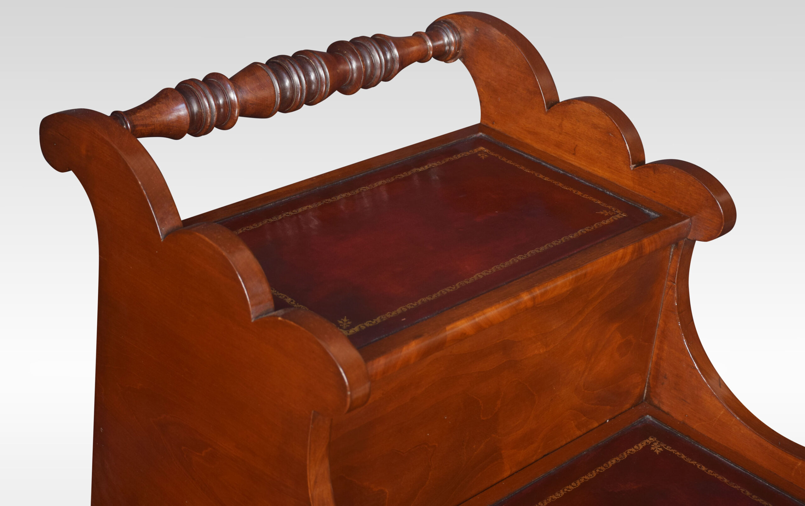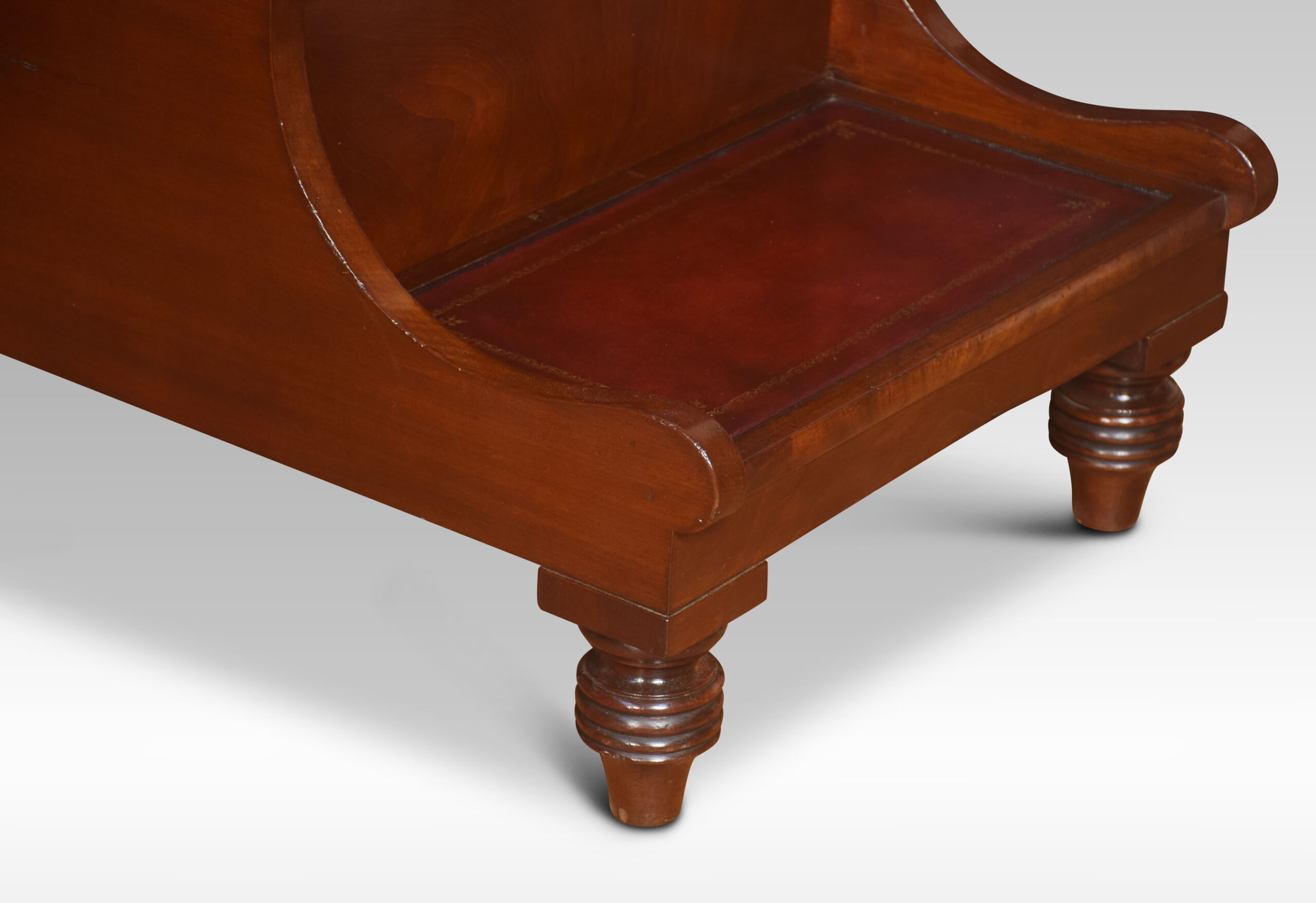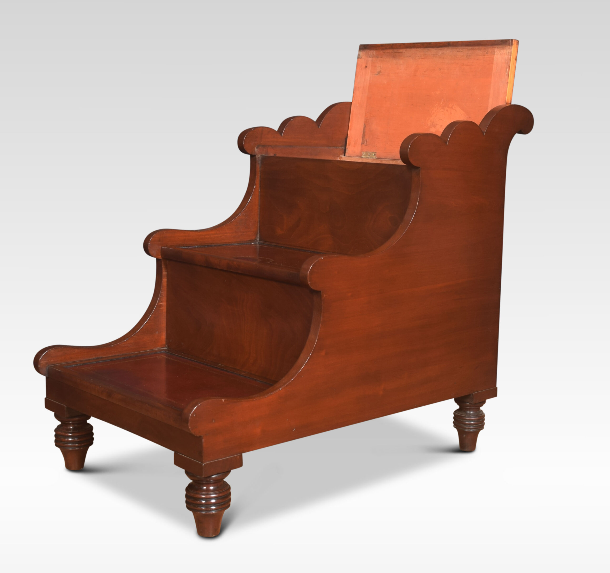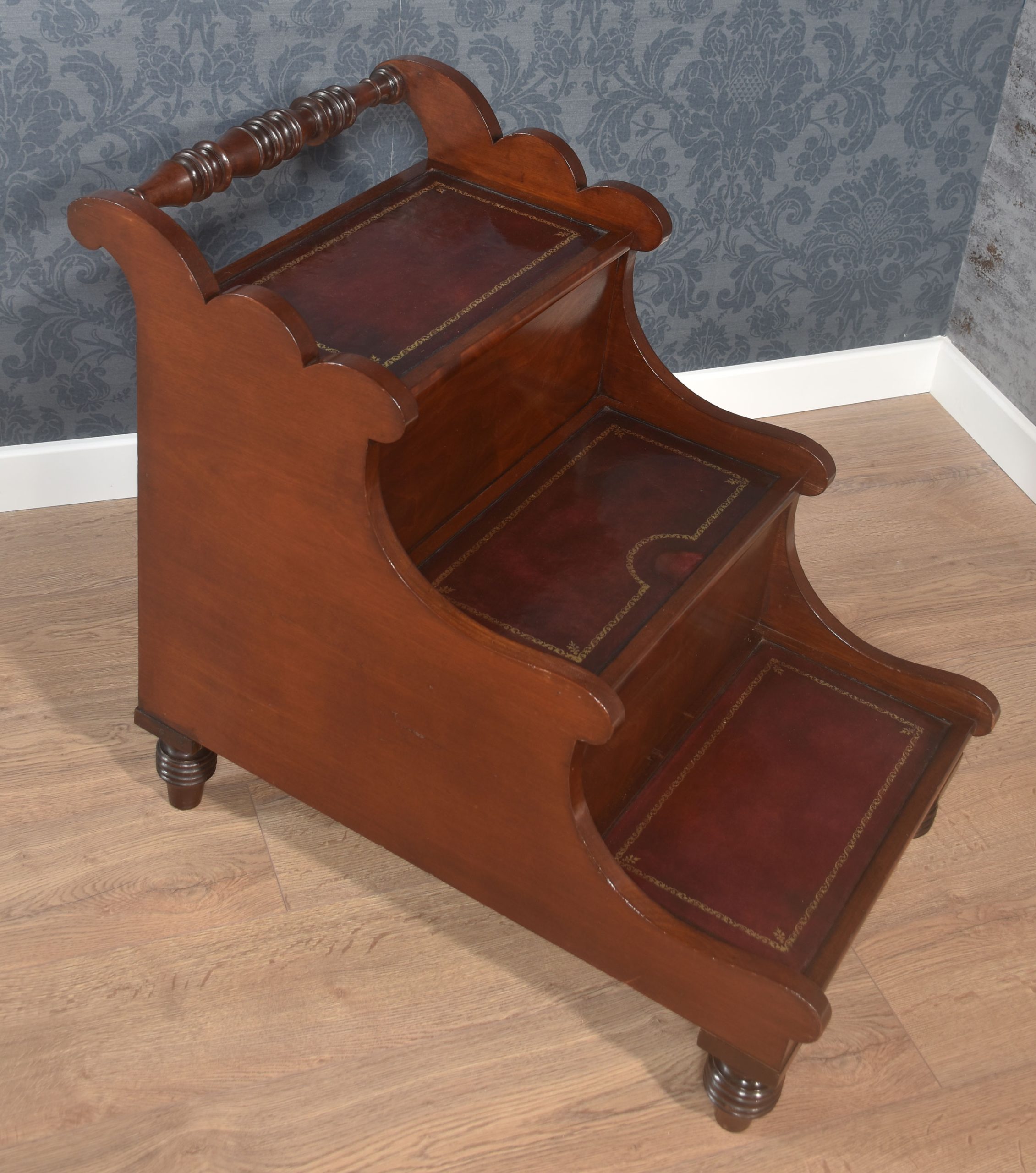 Set of substantial 19th-century mahogany bedside steps, the three treads inset with a replaced burgundy tooled hide. raised up on four mahogany-turned legs.