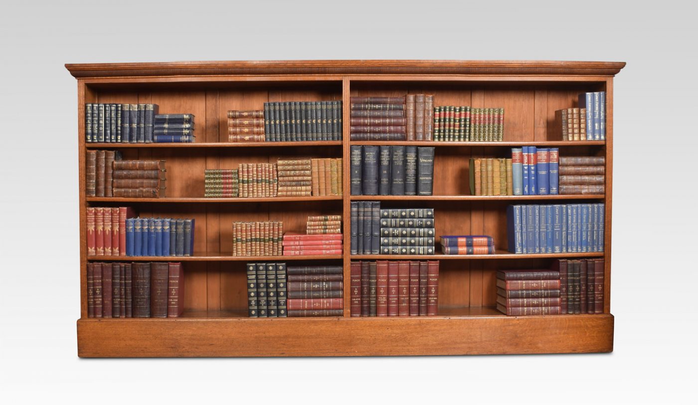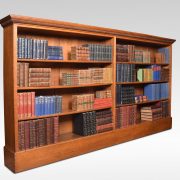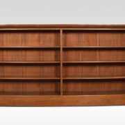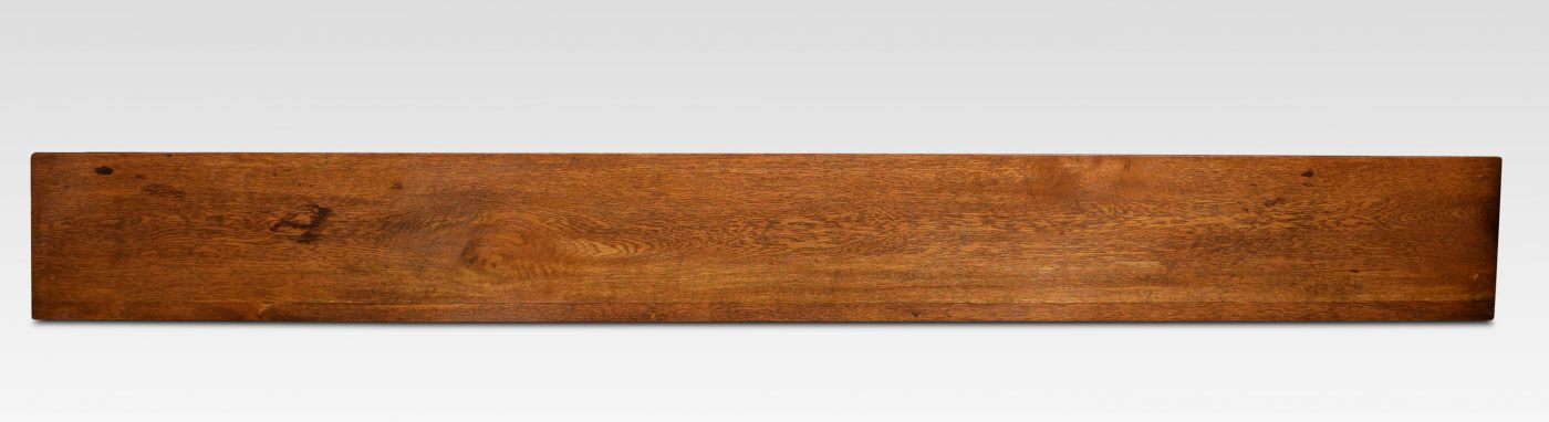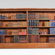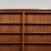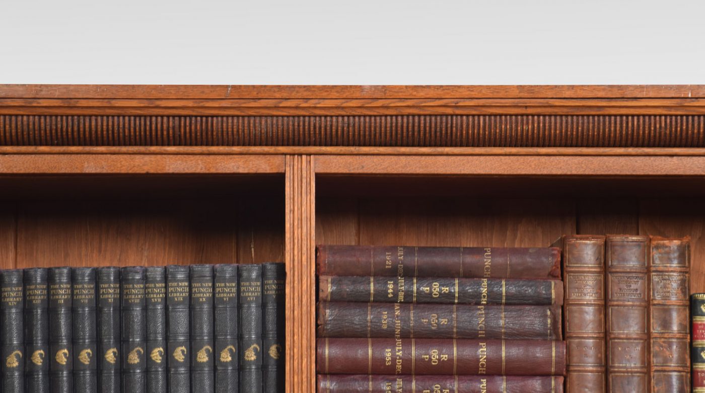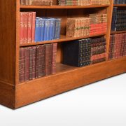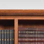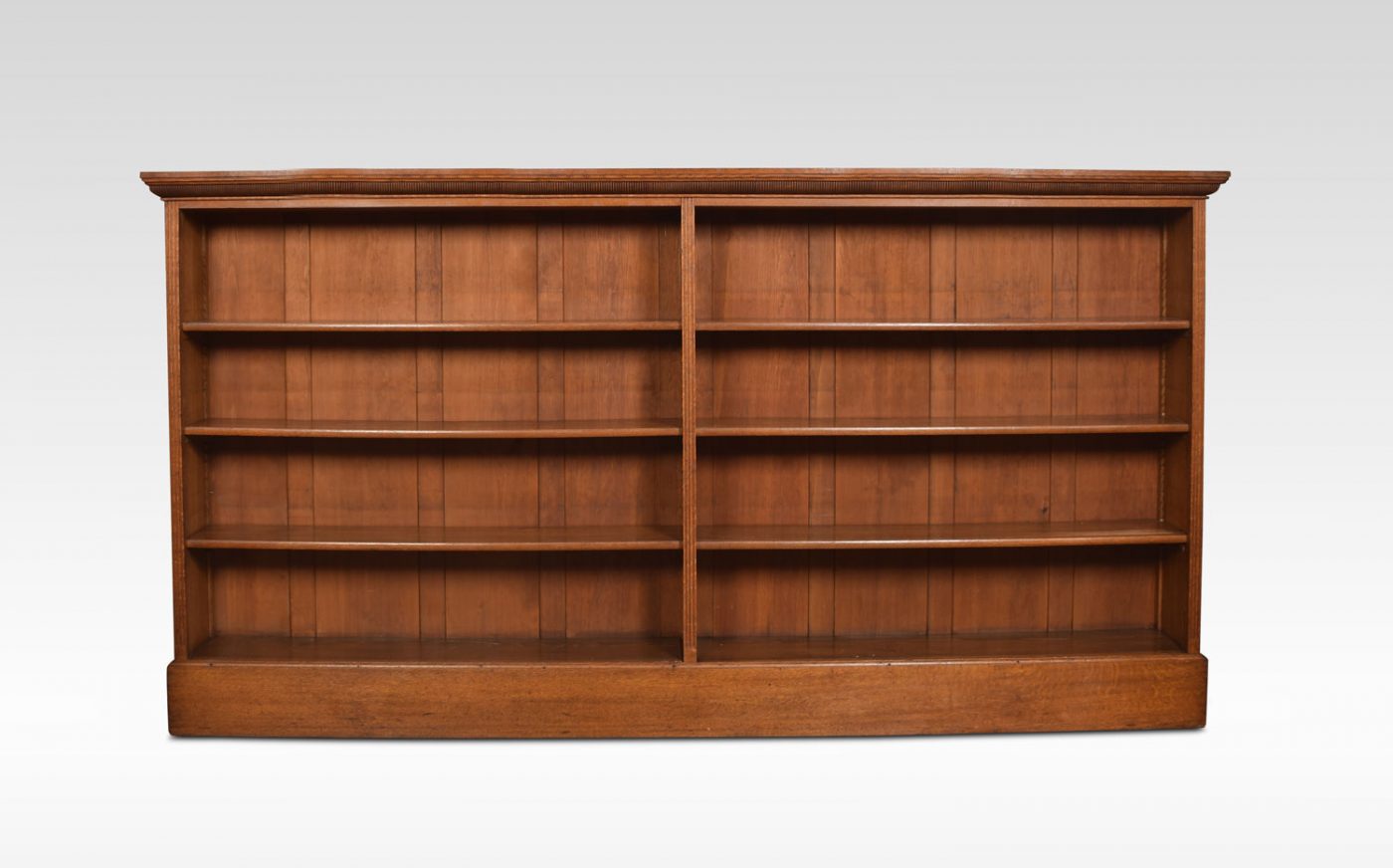 Early 20th-century oak bookcase with a large rectangular moulded reeded top over two sections, each fitted with three adjustable shelves. All raised up on a deep plinth.