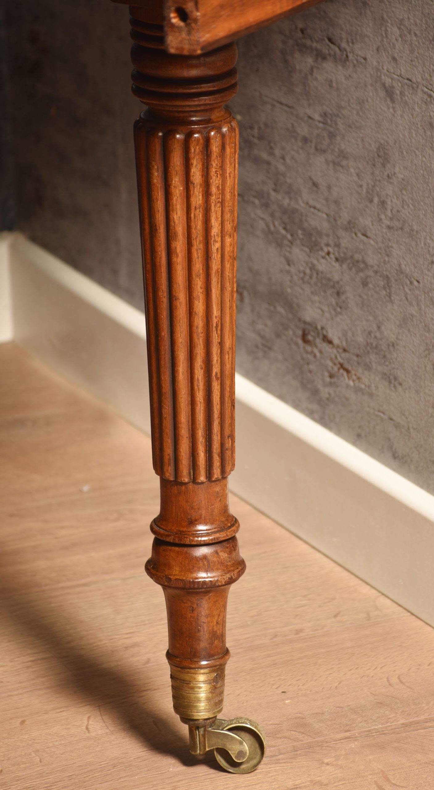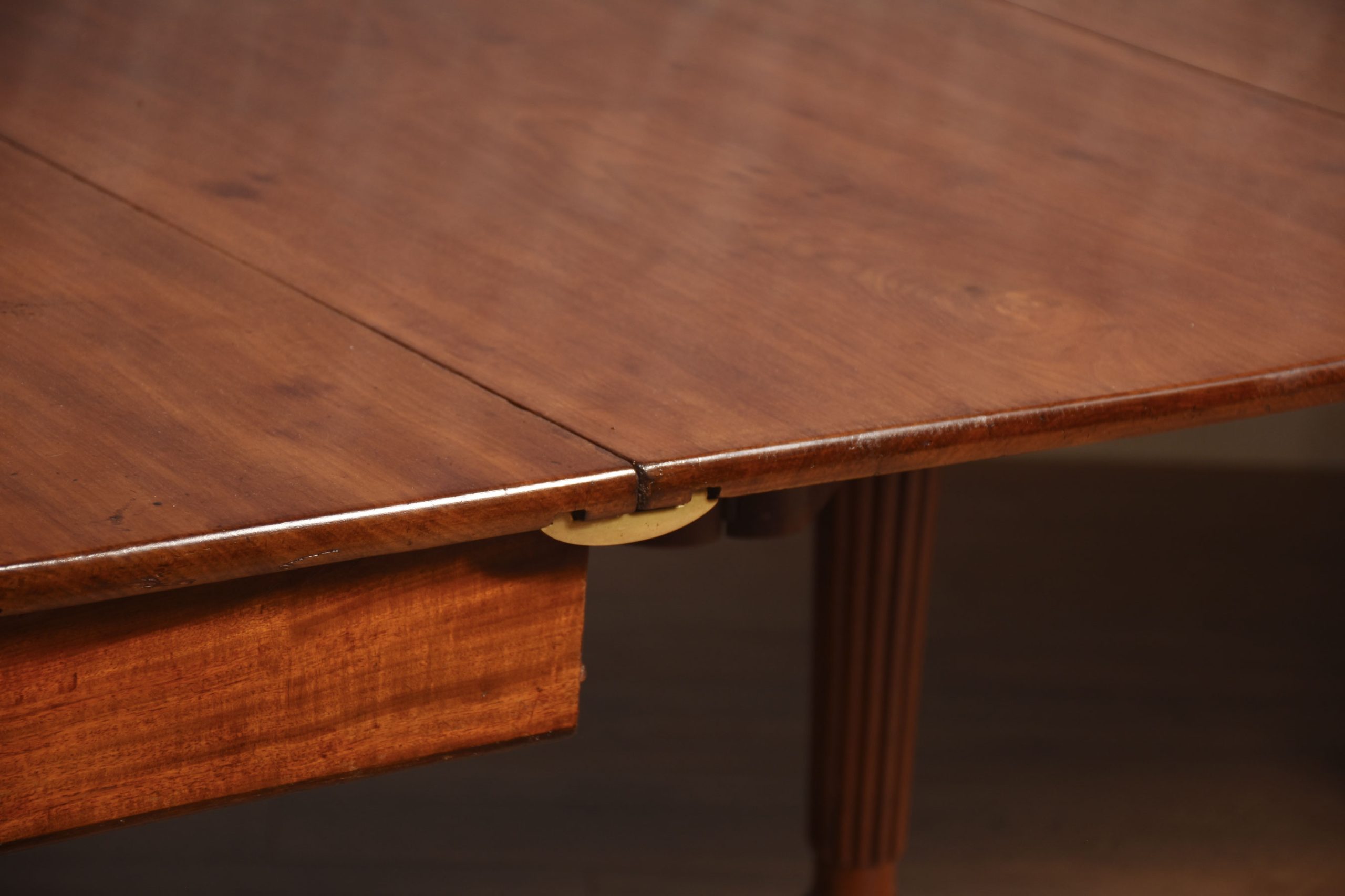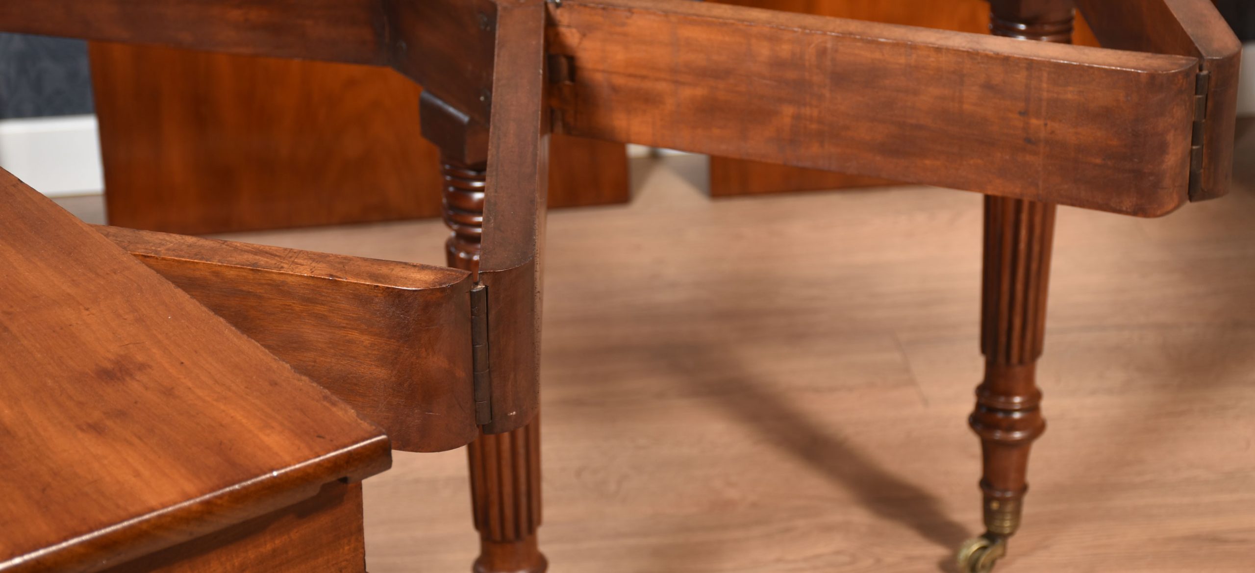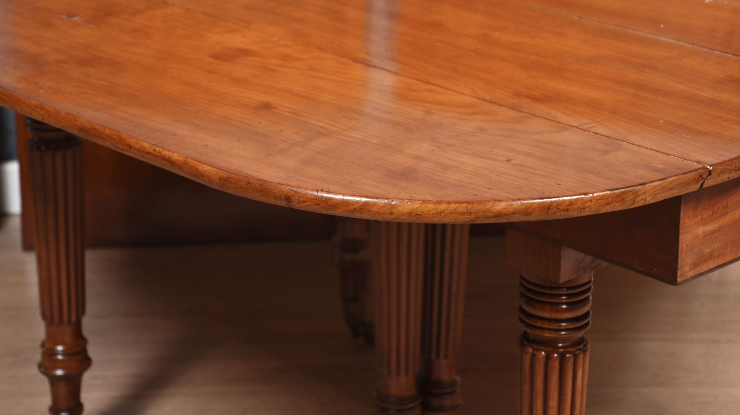 Early 19th Century Mahogany Extending Dining Table, in the manner of Gillows, The large well-figured mahogany top having shaped lift-up ends opening to incorporate three original additional leaves. The concertina action frame on fine-turned and reeded tapering legs with brass-capped toes and castors. This table will seat 10-12 People.