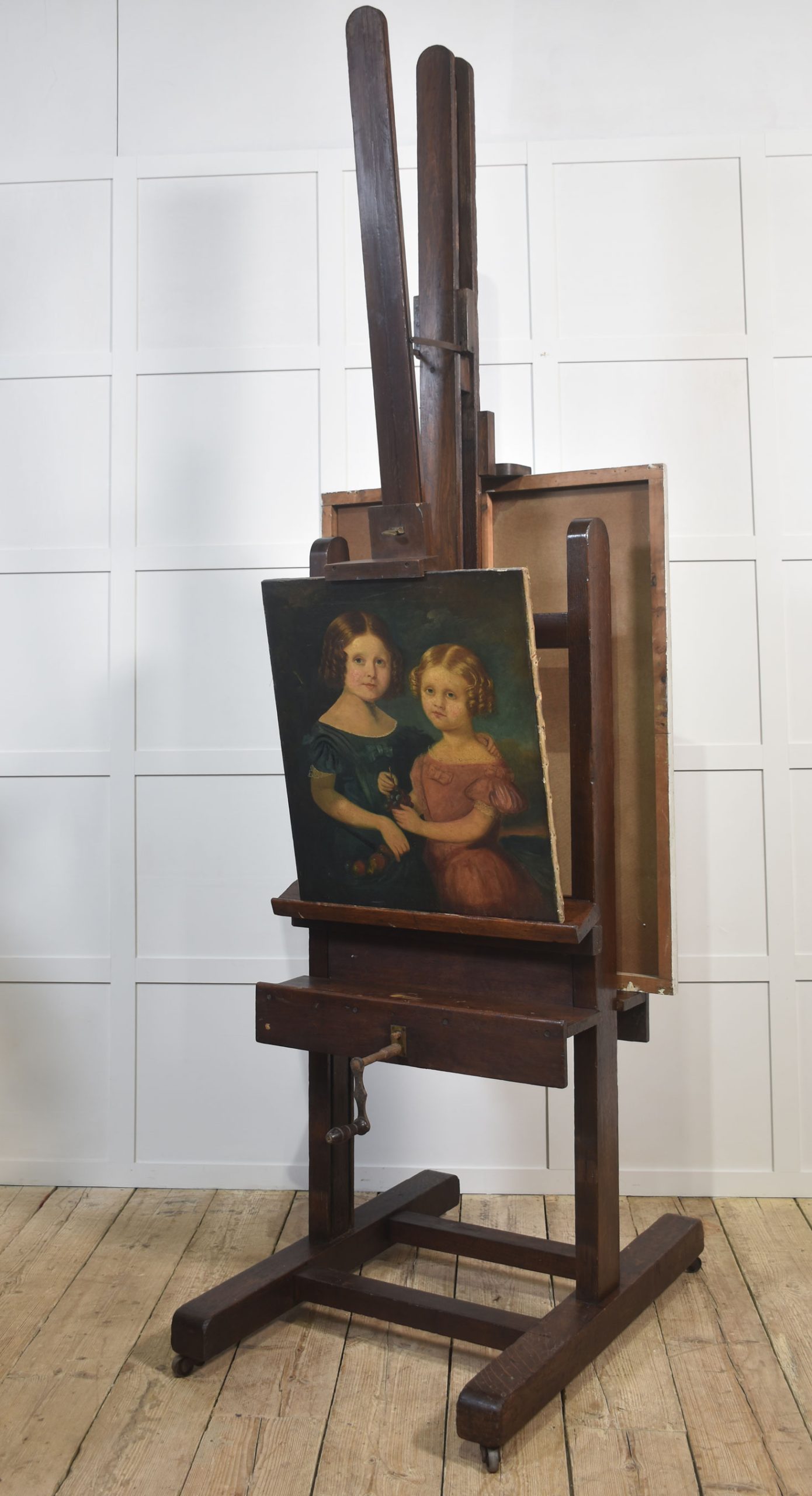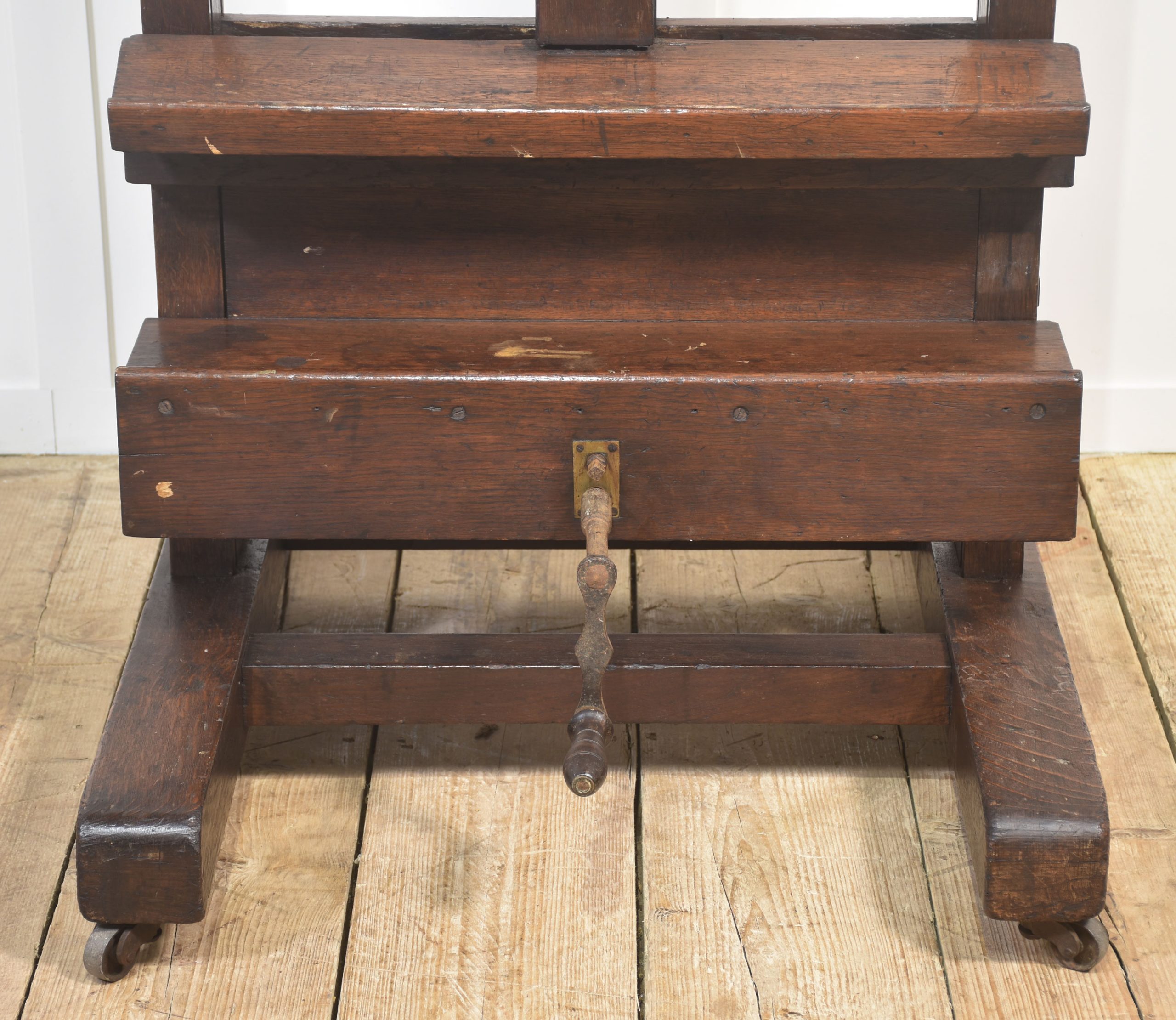 Its robust H-frame base provides superb stability and is fitted with casters for easy movement. The oak wood showcases a deep, warm patina, highlighting the character and age of this striking piece. Equally suited for professional studio use, gallery display, or as a statement decorative feature. (will take a maximum 82.5 Height canvas)