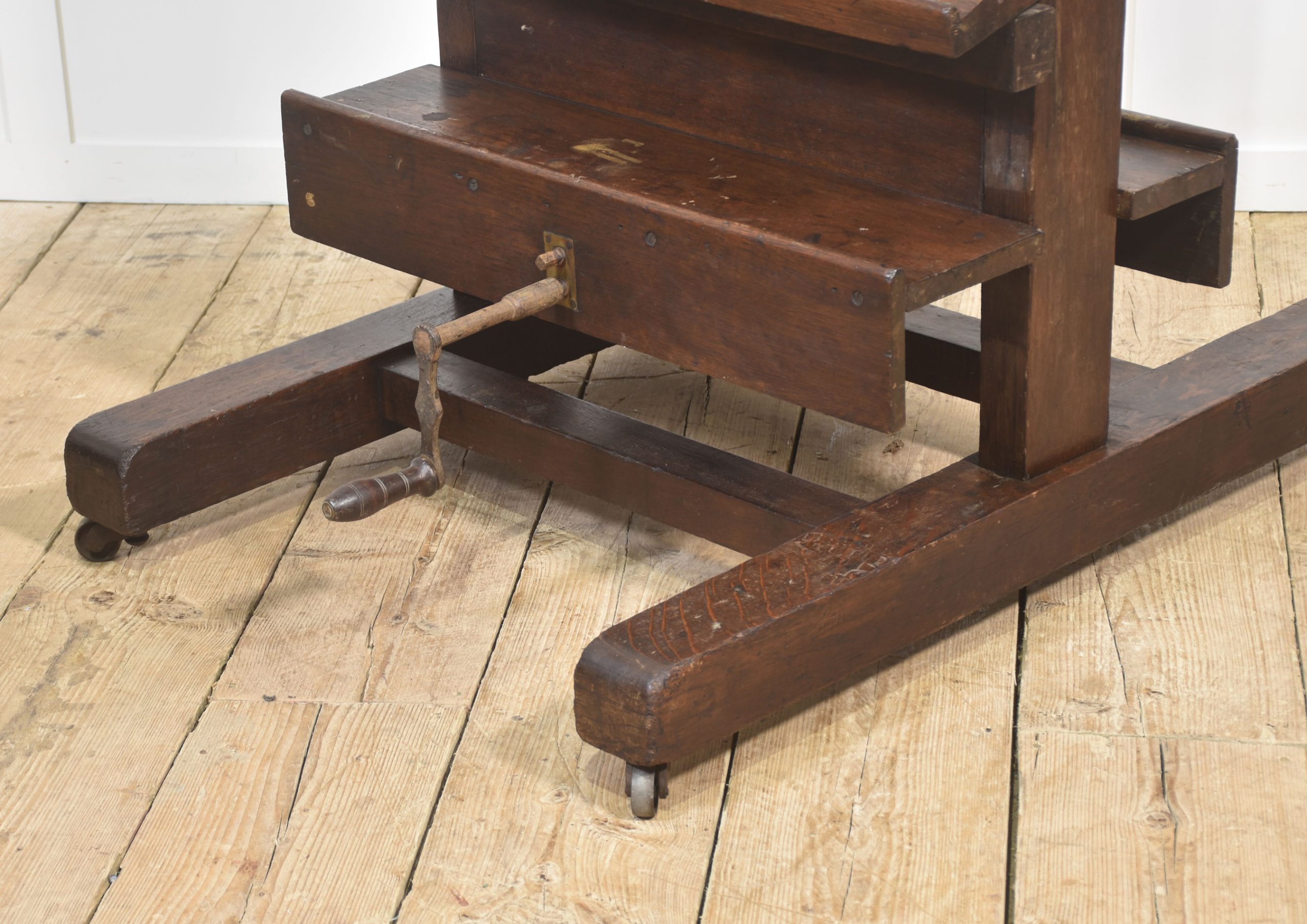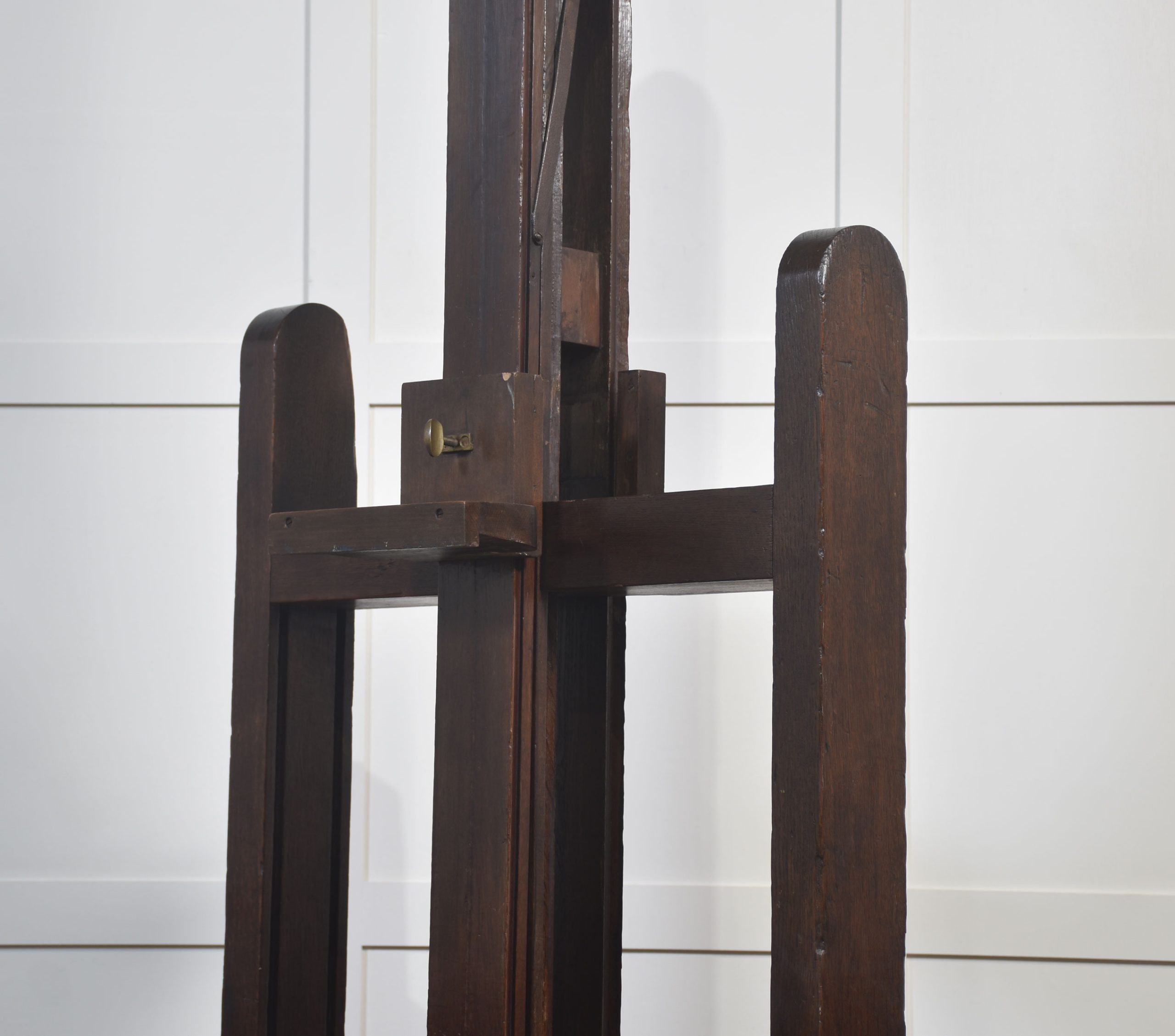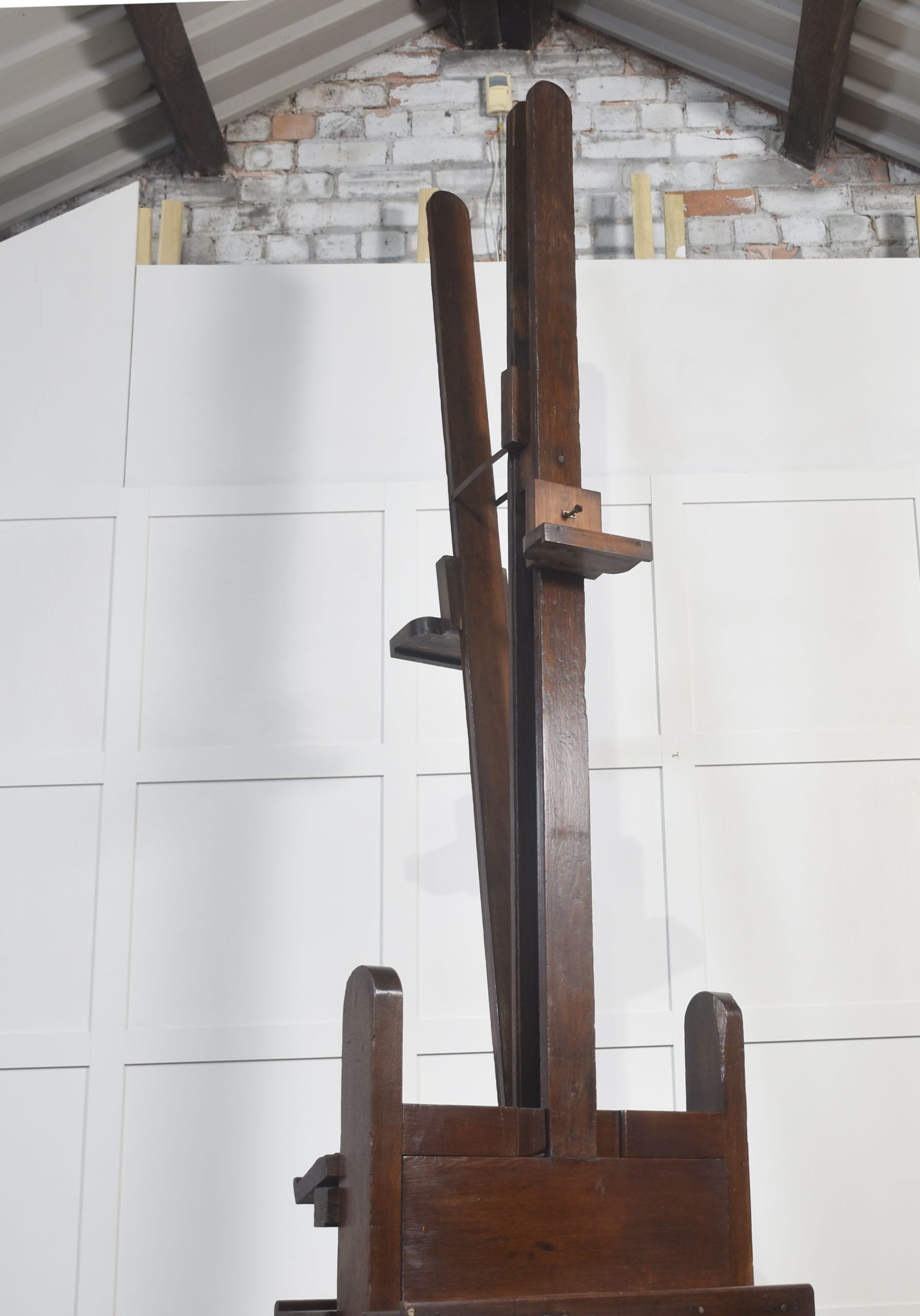 A monumental antique artist’s easel, crafted from solid oak and built with exceptional quality and presence. This impressive piece combines timeless craftsmanship with full functionality, making it a true centerpiece for any studio or interior.