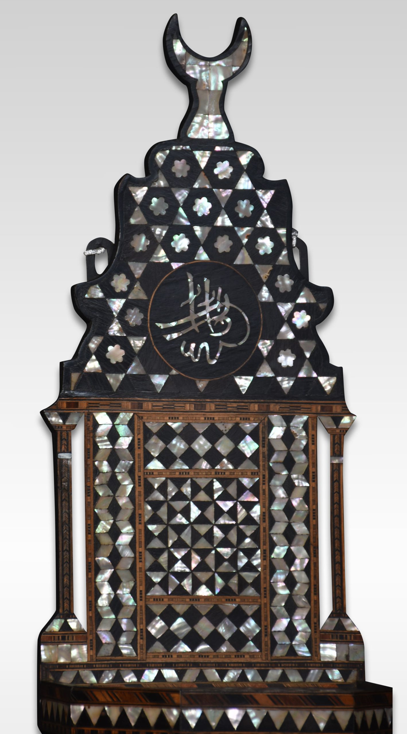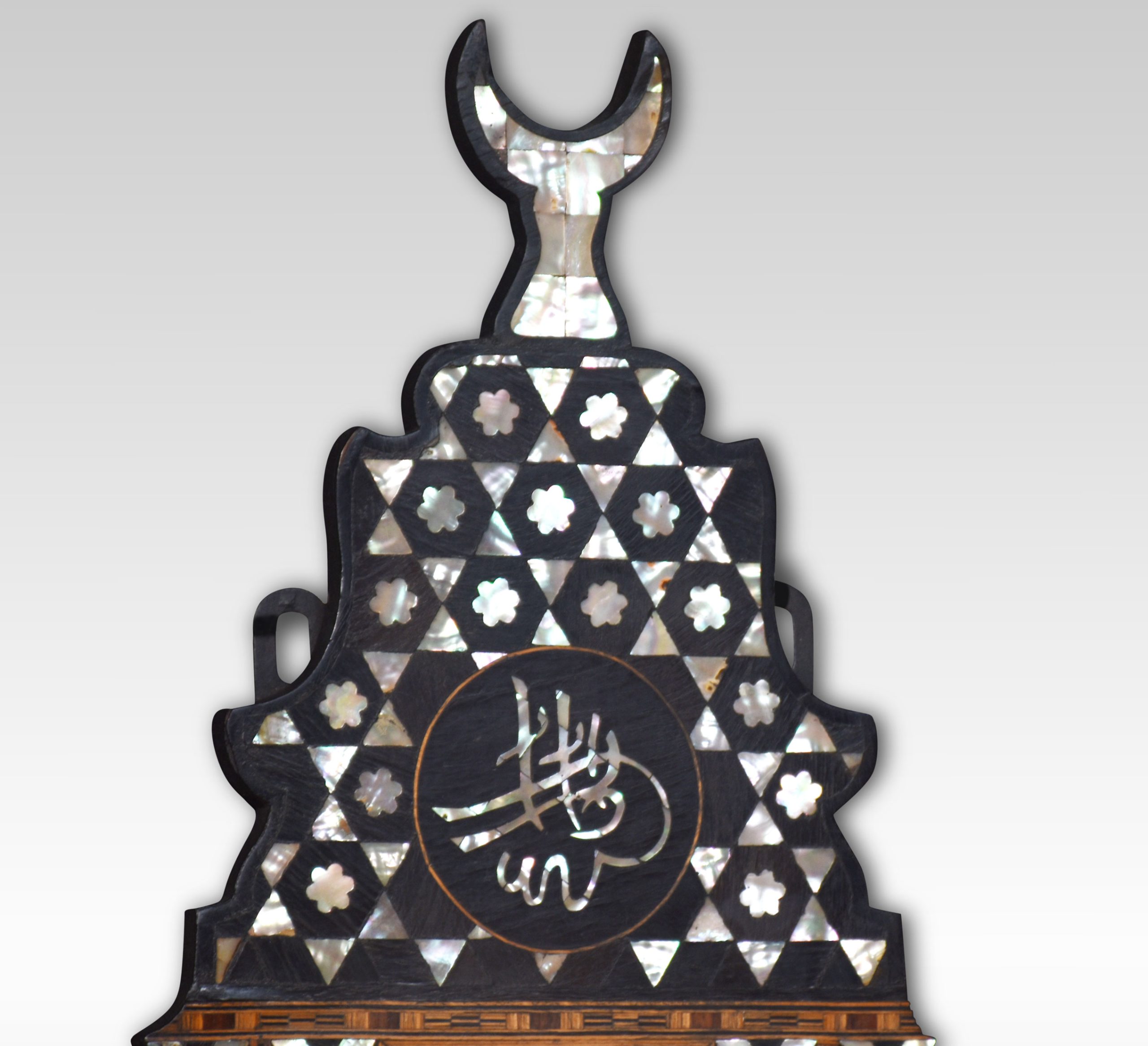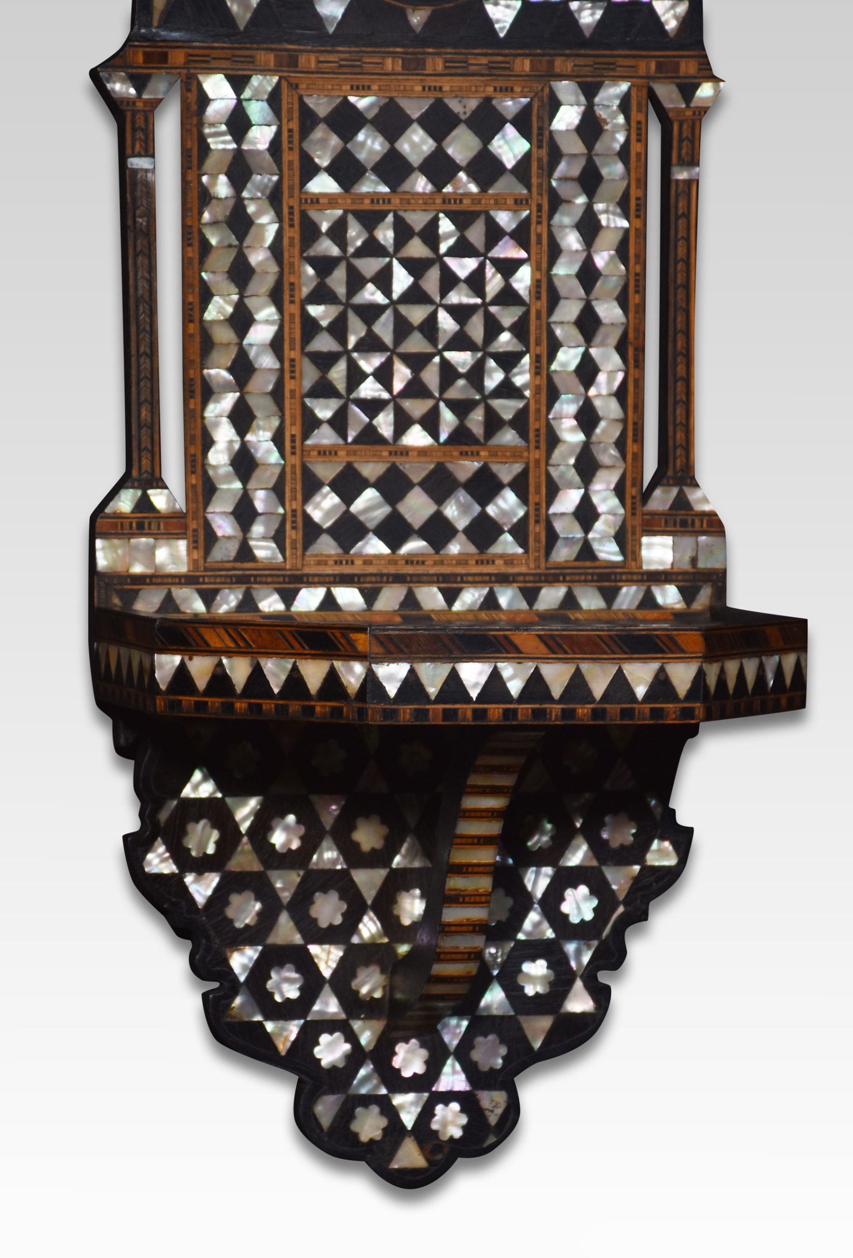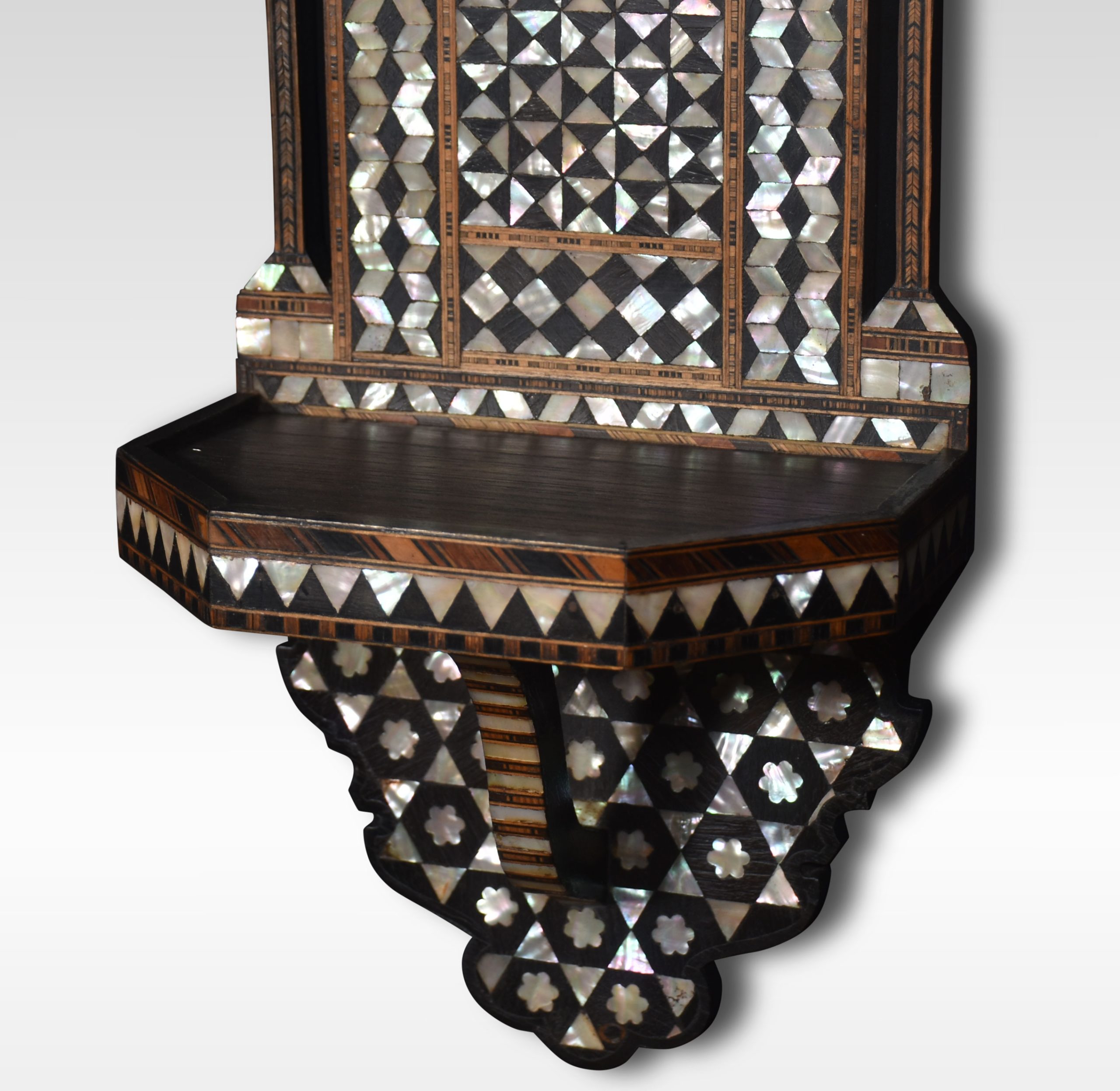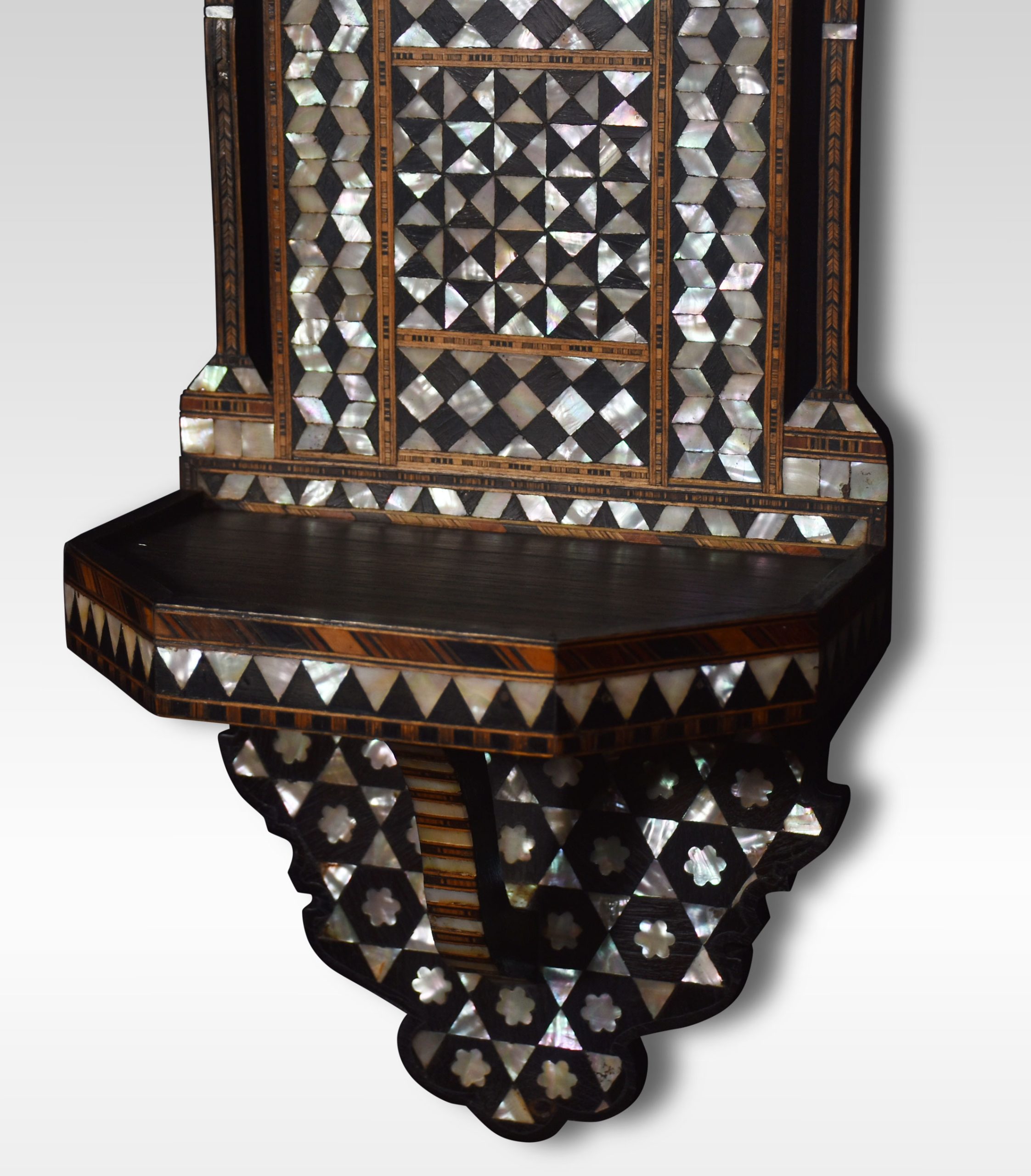 Moorish wall bracket expertly crafted with geometric inlays of mother of pearl, bone, and exotic hardwoods.