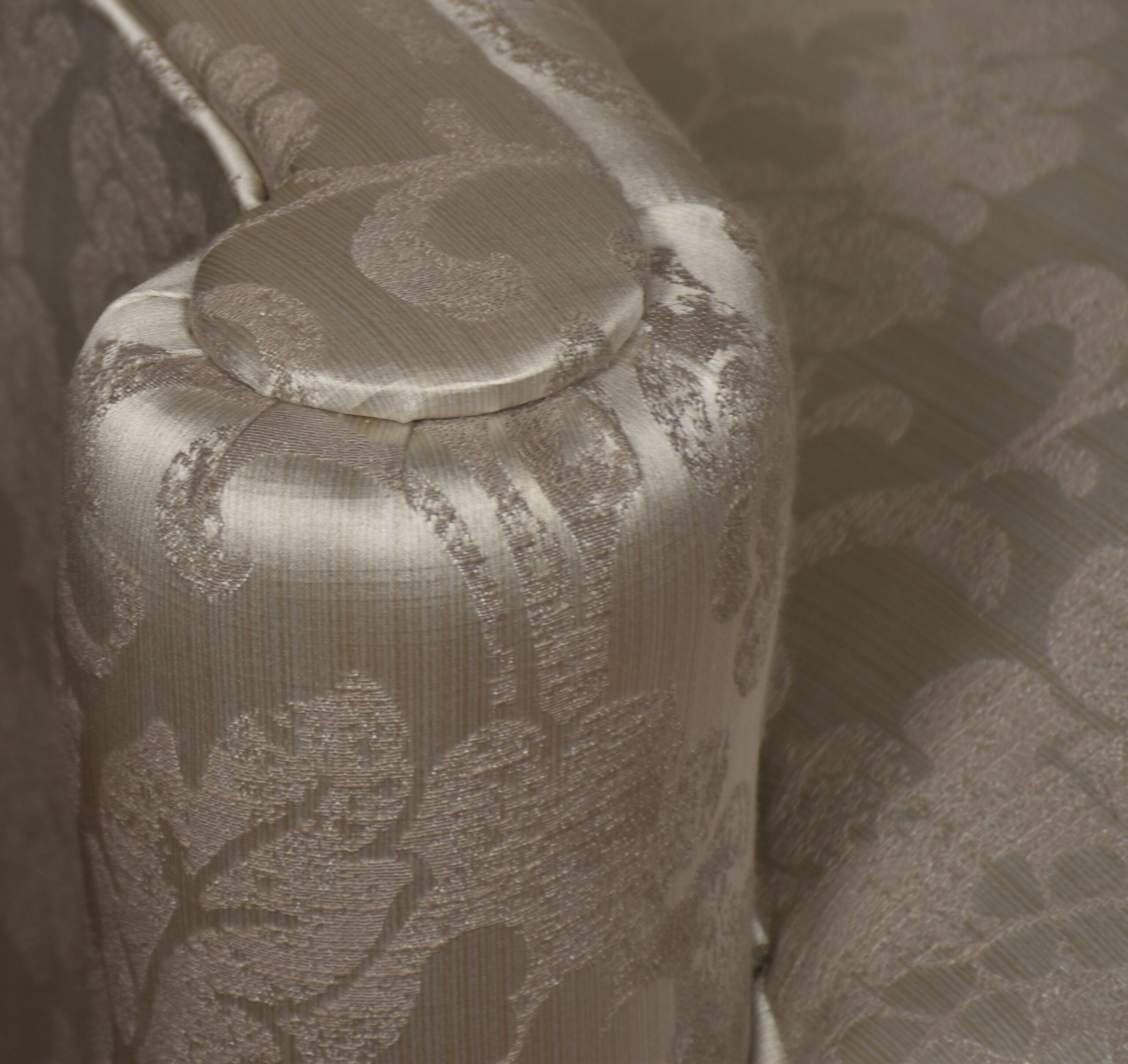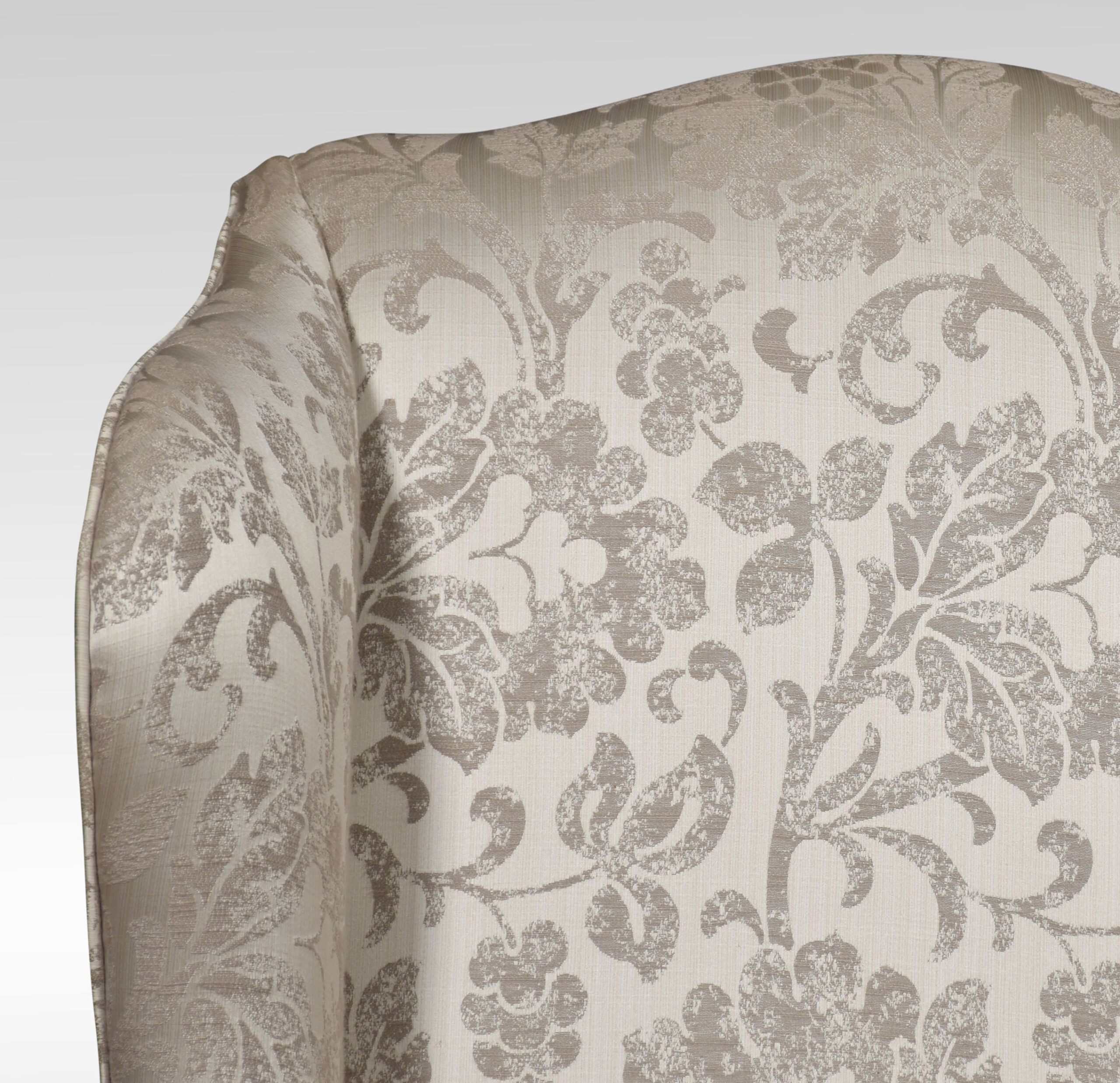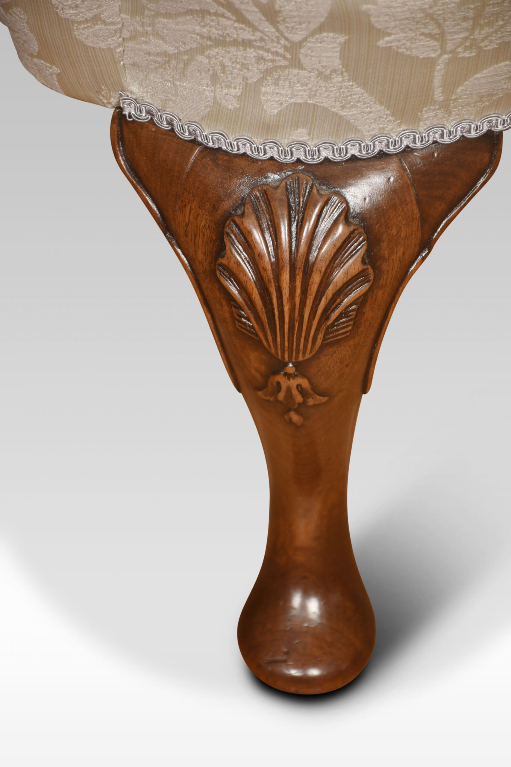 A pair of Georgian-style armchairs, the winged back, and upholstered seat, flaked by outswept arms. All raised up on shell capped cabriole front sports.