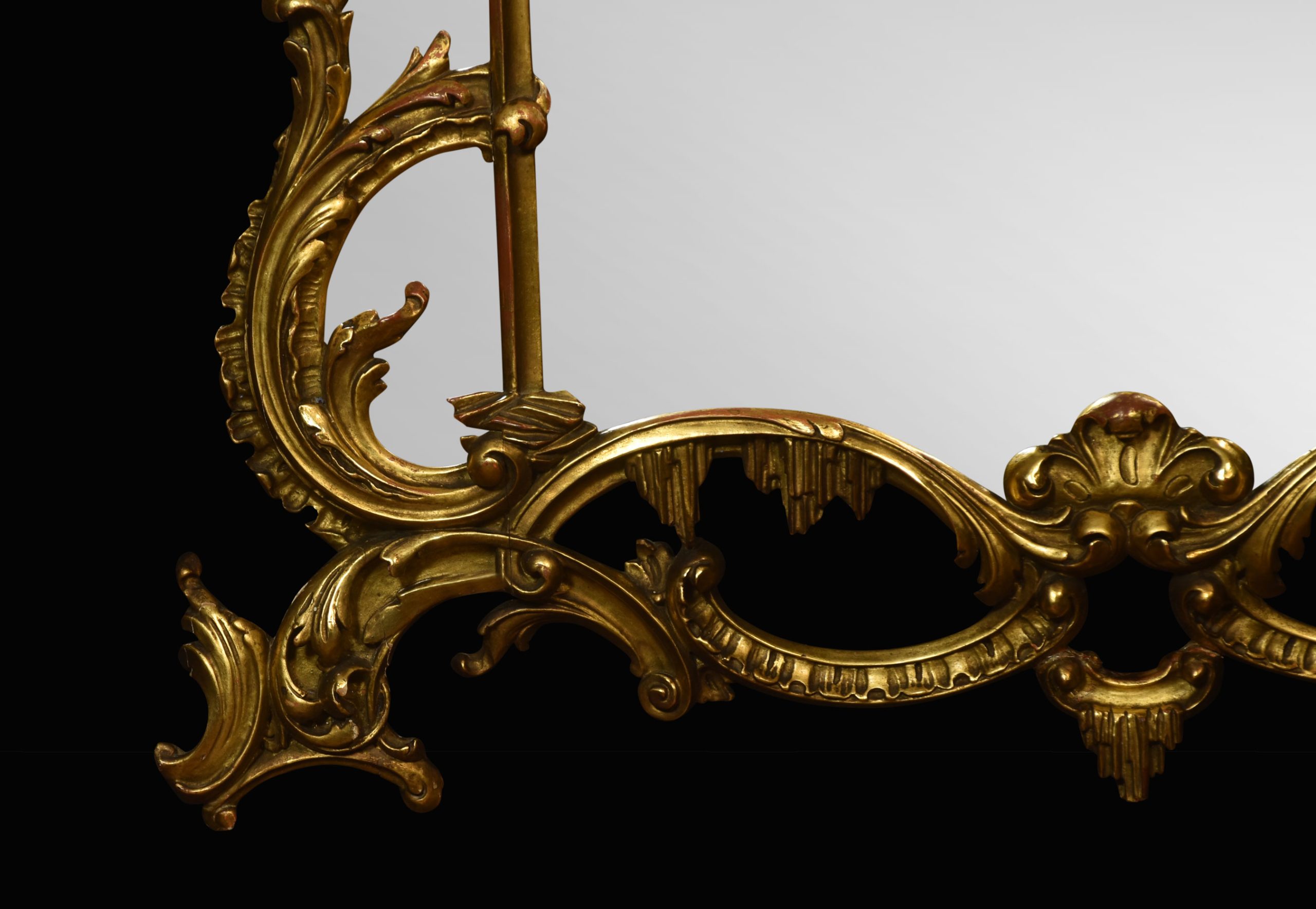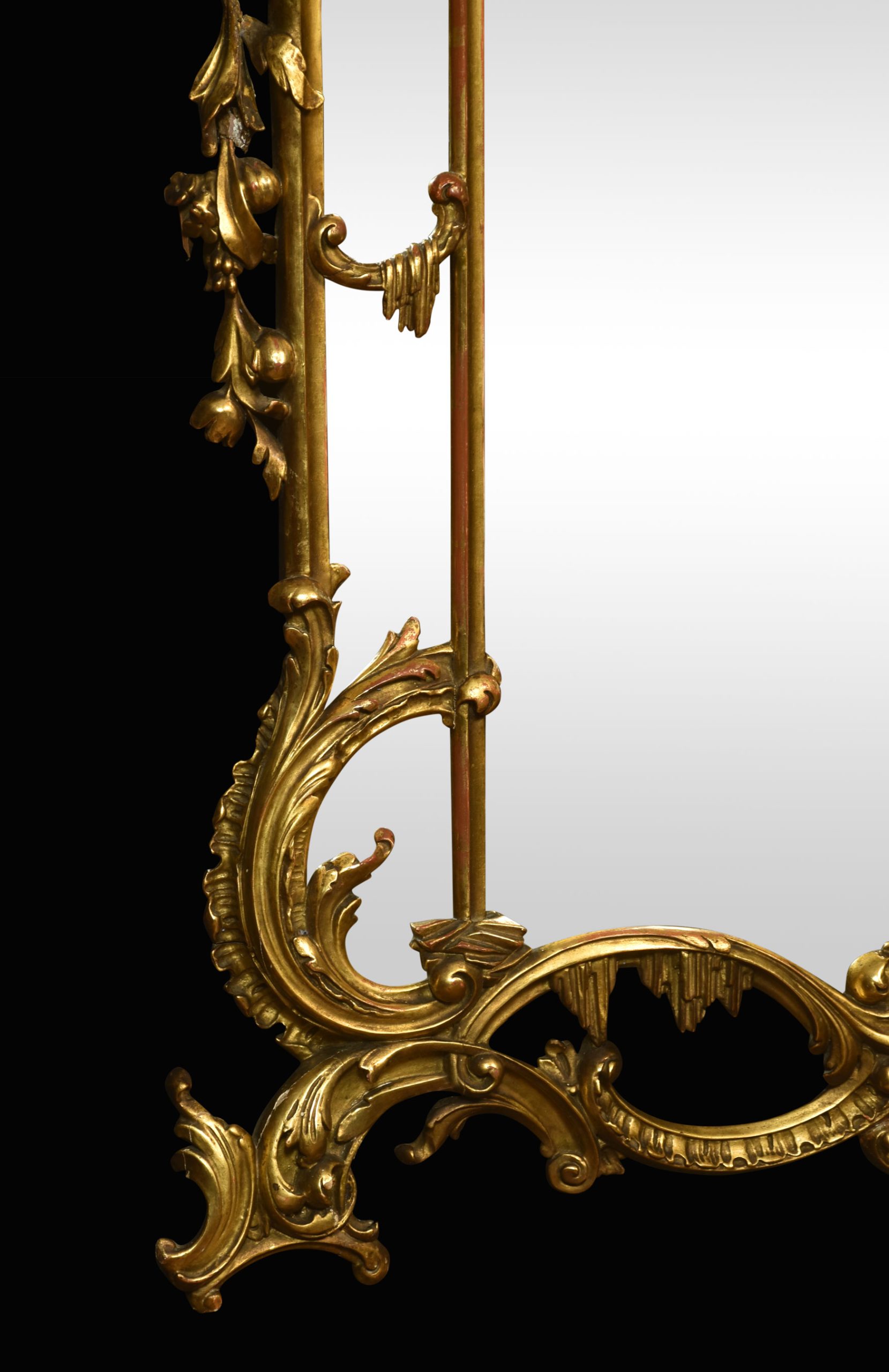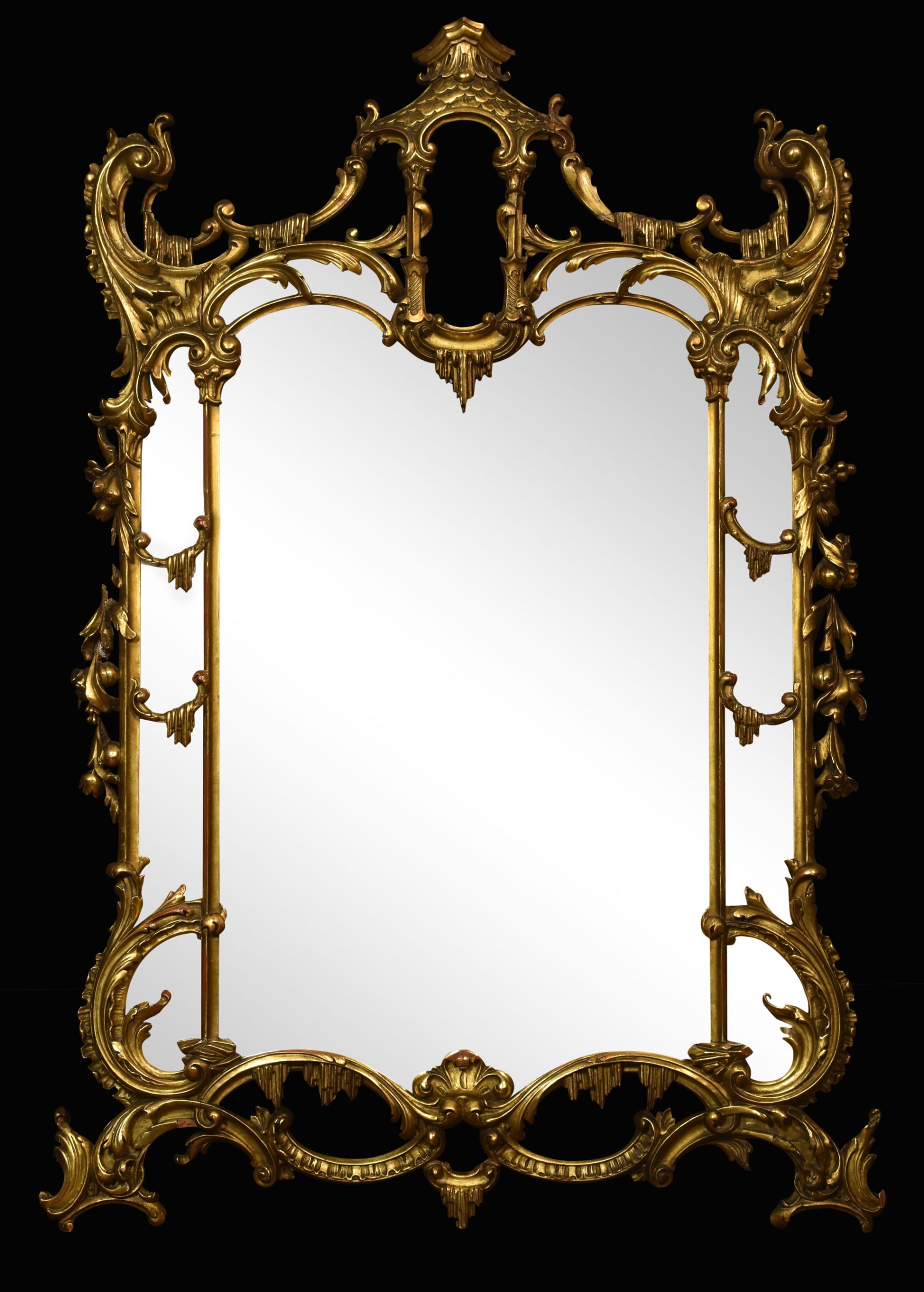 Chippendale style gilt wall mirror. The original arched plate is surrounded by a pagoda top above a gilt-wood C scroll acanthus and floral frame.