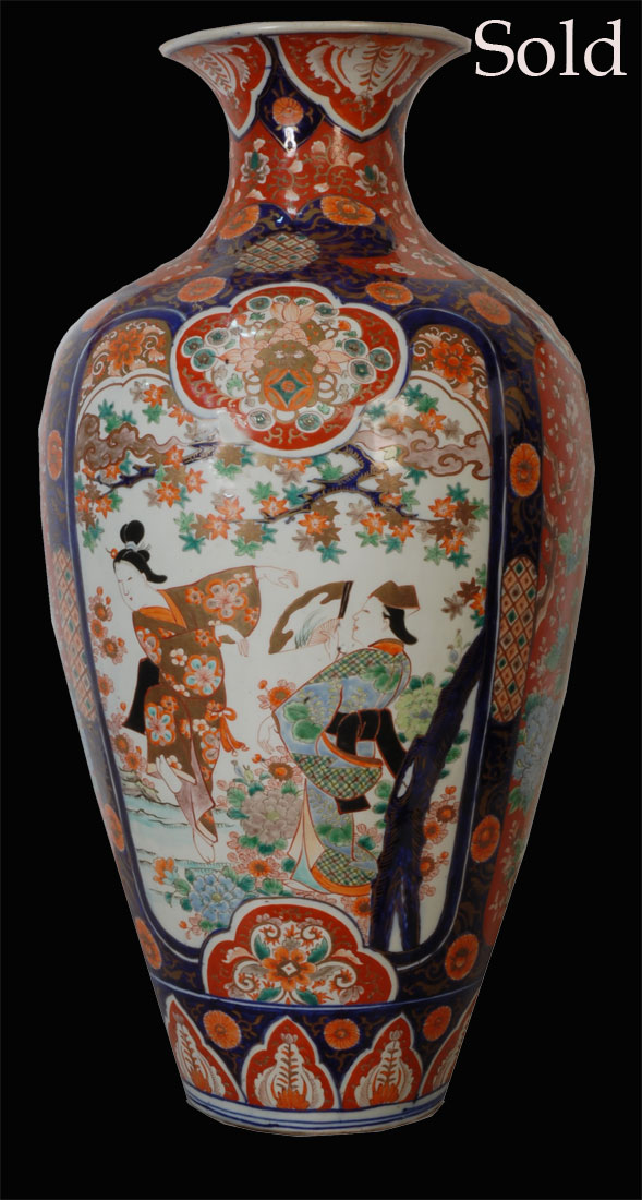 A large Imari vase, the painted with figures in garden settings, supplementary reserves with floral ground, painted in under-glazed blue, coloured enamels and gilt