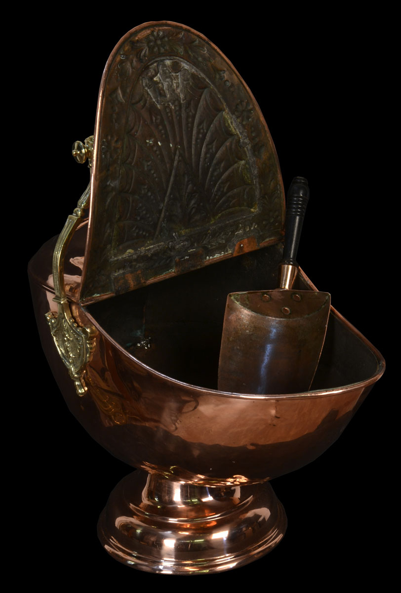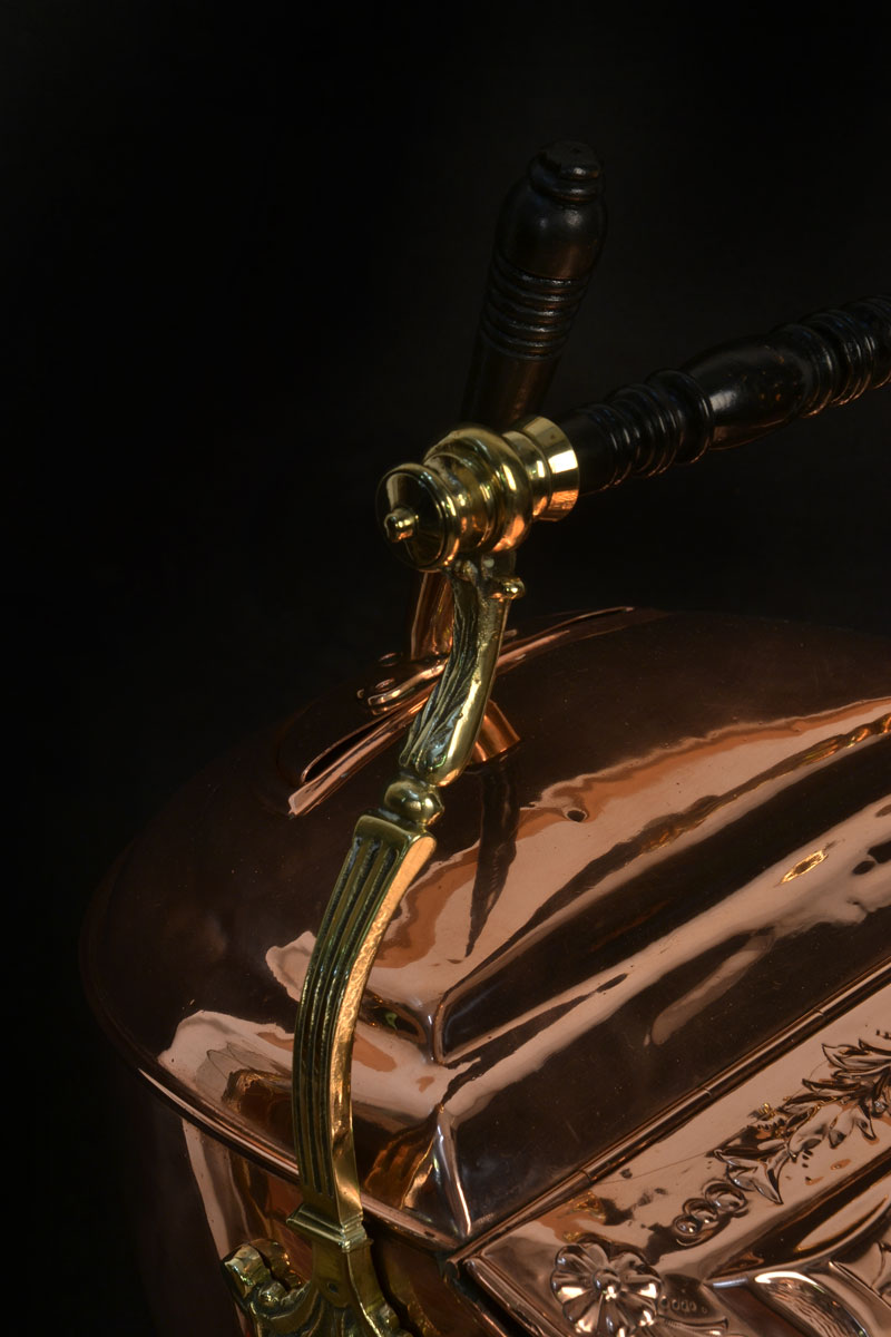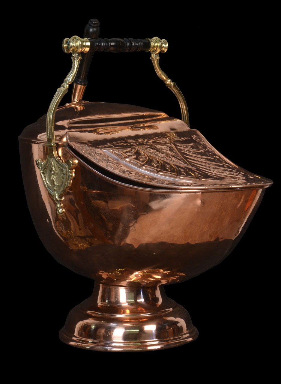 Victorian copper embossed coal scuttle circa 1890