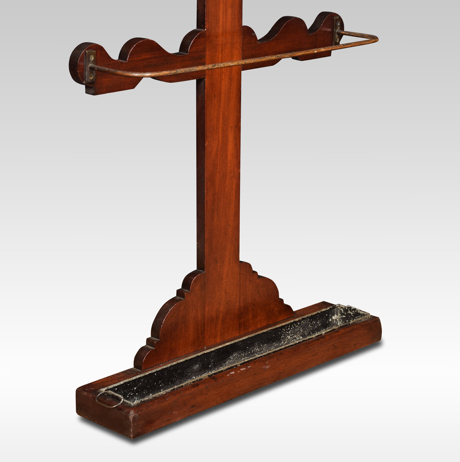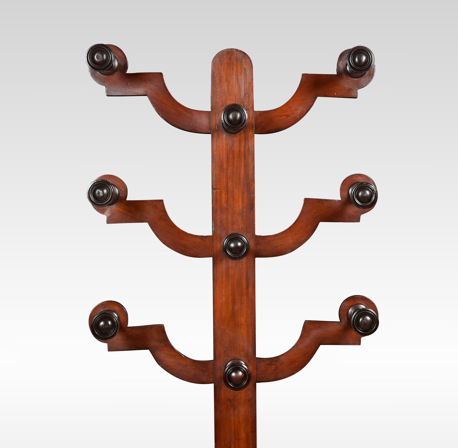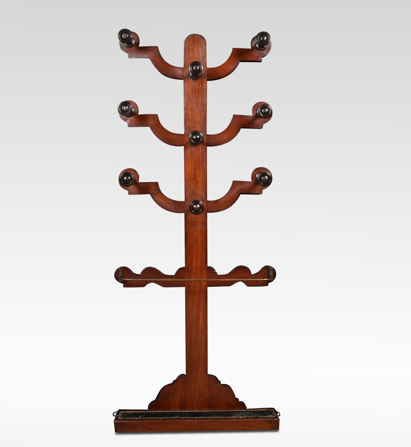 Victorian mahogany hall stand with nine turned hooks over a rectangular platform base with inset removable drip tray.
